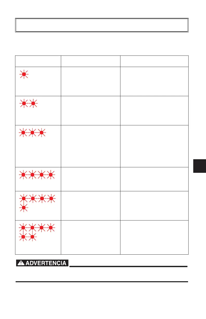 Si se produce una falla, cuente el número de destellos rojos entre pausas y consulte