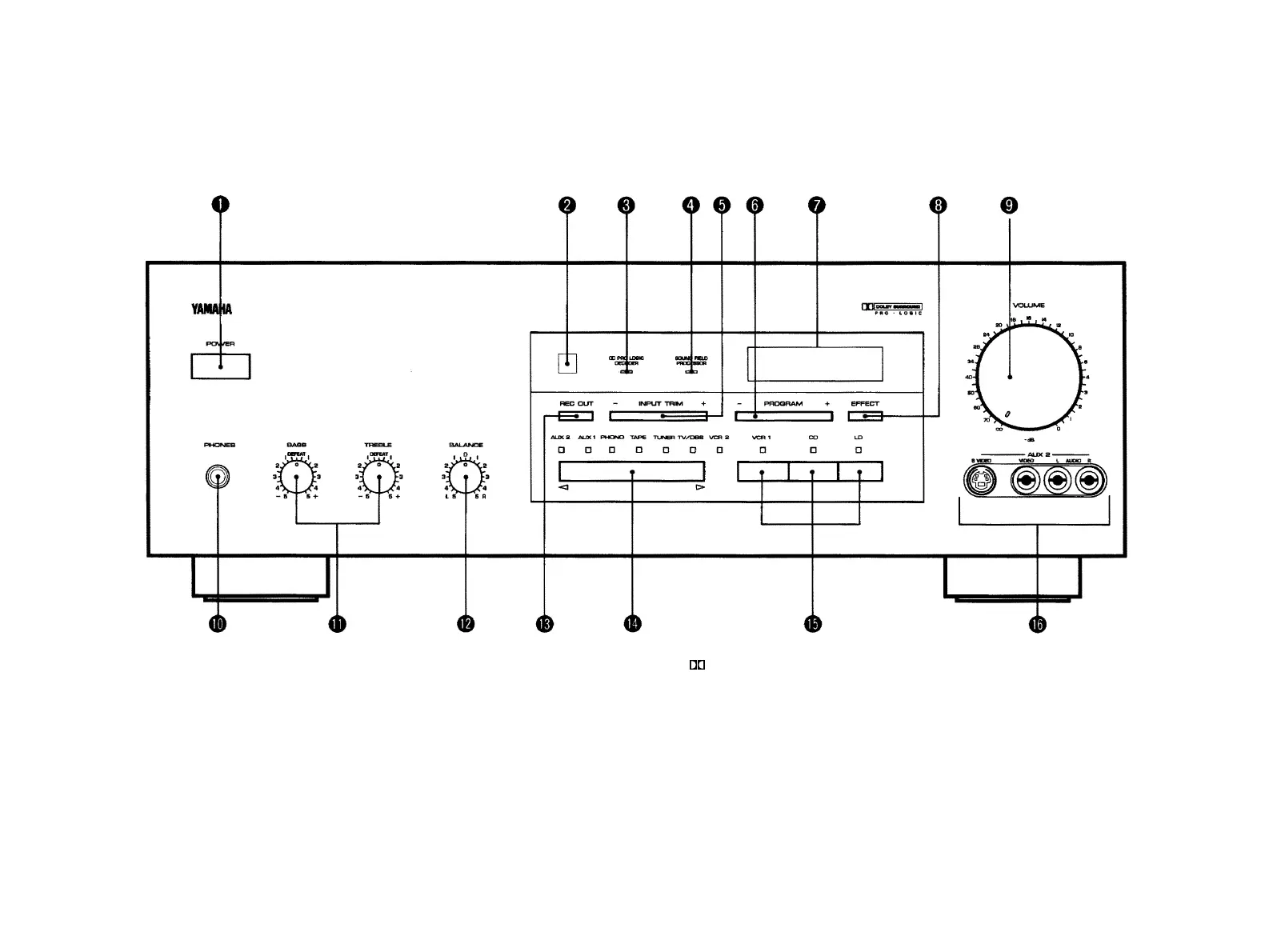 Illuminates while the built-in Dolby Pro Logic Surround Decoder is
