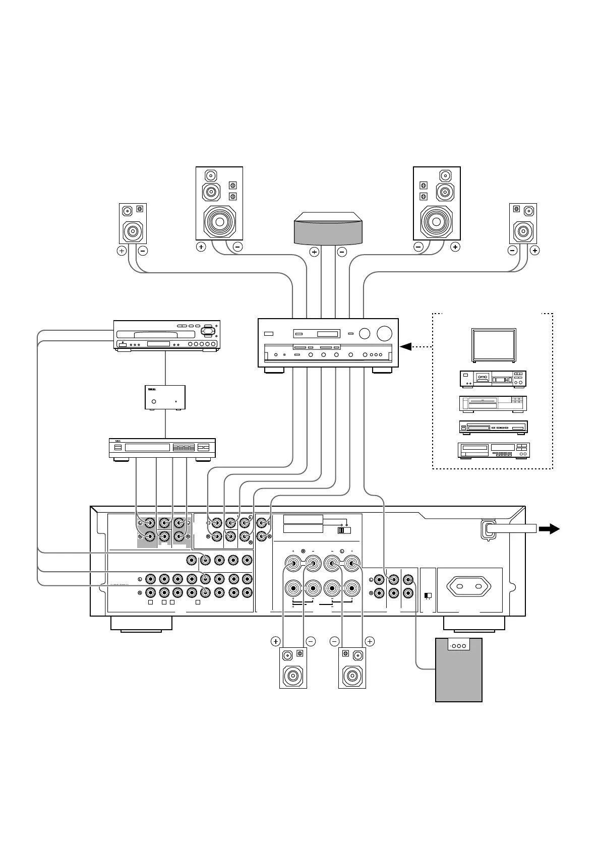 (This diagram shows this unit is connected with the Yamaha DSP-A2070 which is equipped with the digital sound field