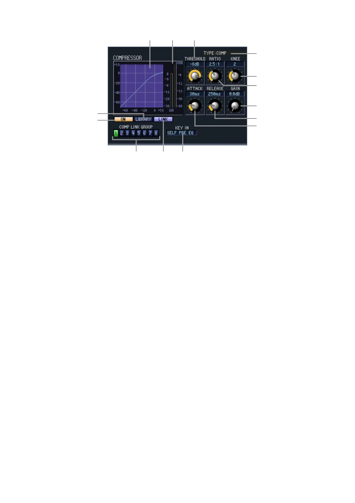 If the TYPE is COMP or EXPANDER, you can set the KNEE. The KNEE is the abruptness with which the output