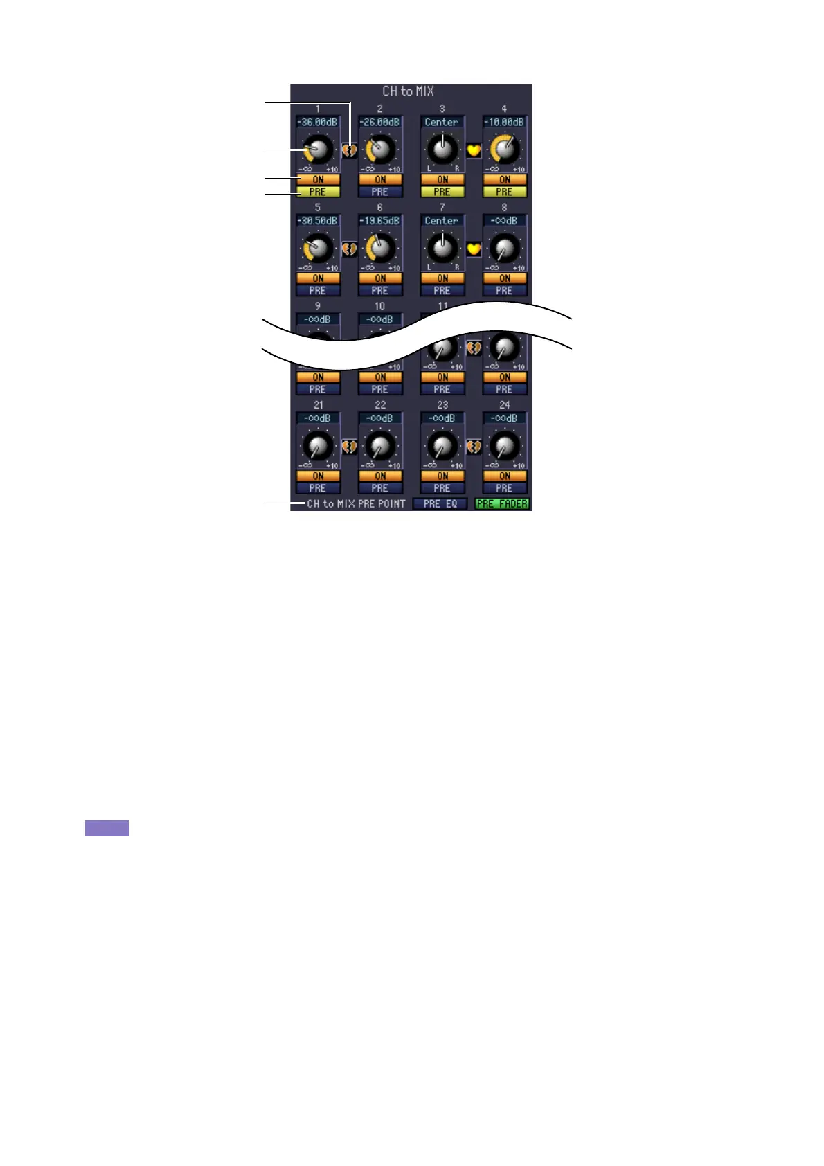 This selects PRE or POST as the point from which the signal is sent from the input channel to the MIX bus.