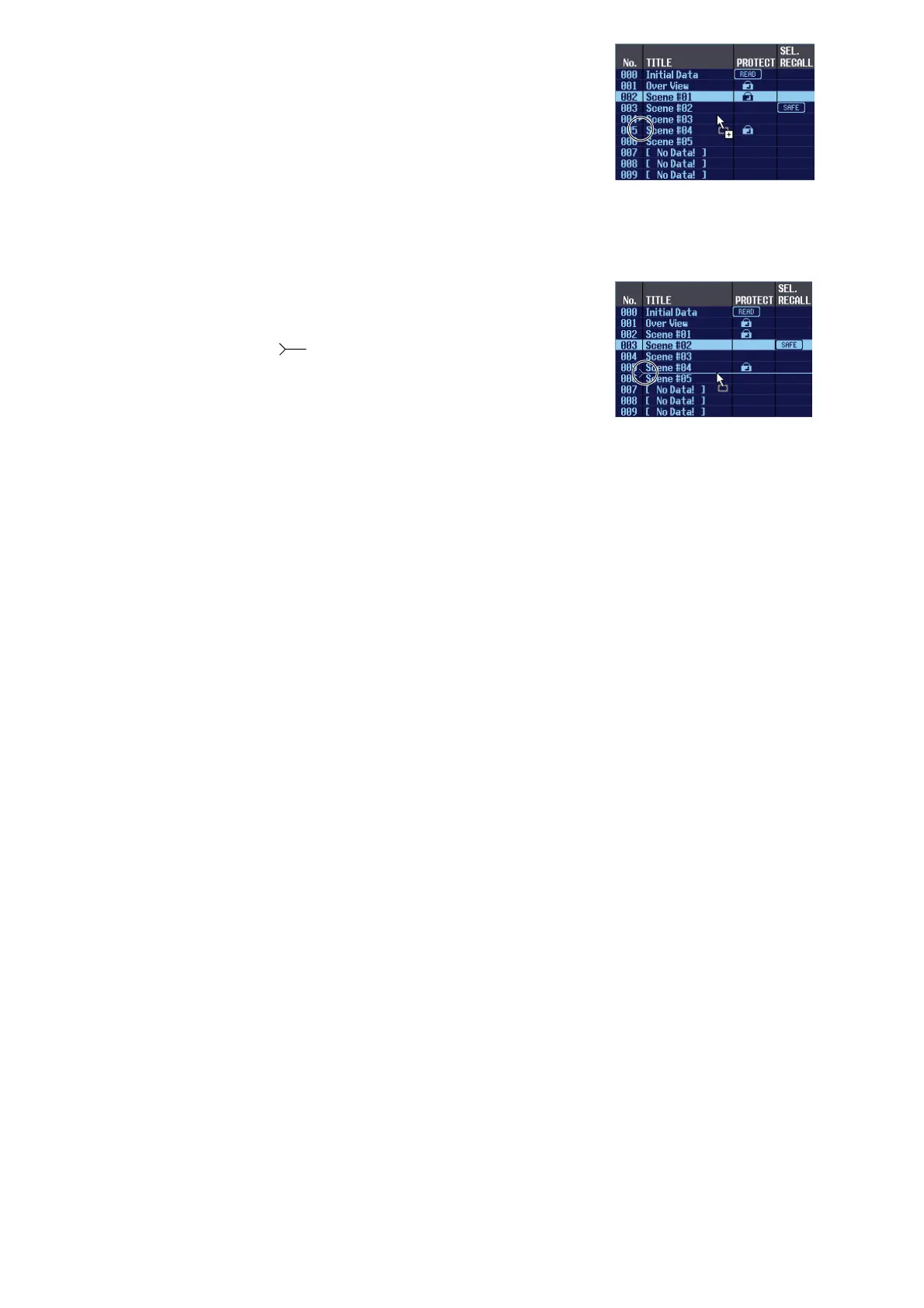 Clears the scene(s) selected in the list. (The title of the cleared scene(s) will be reset to [ No Data! ].)