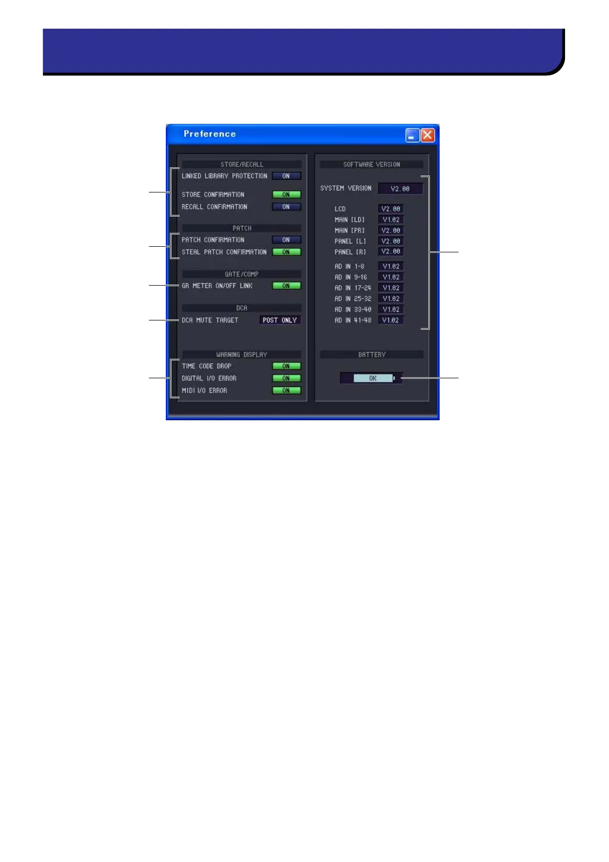 In this window you can make PM5D/DSP5D preference settings.