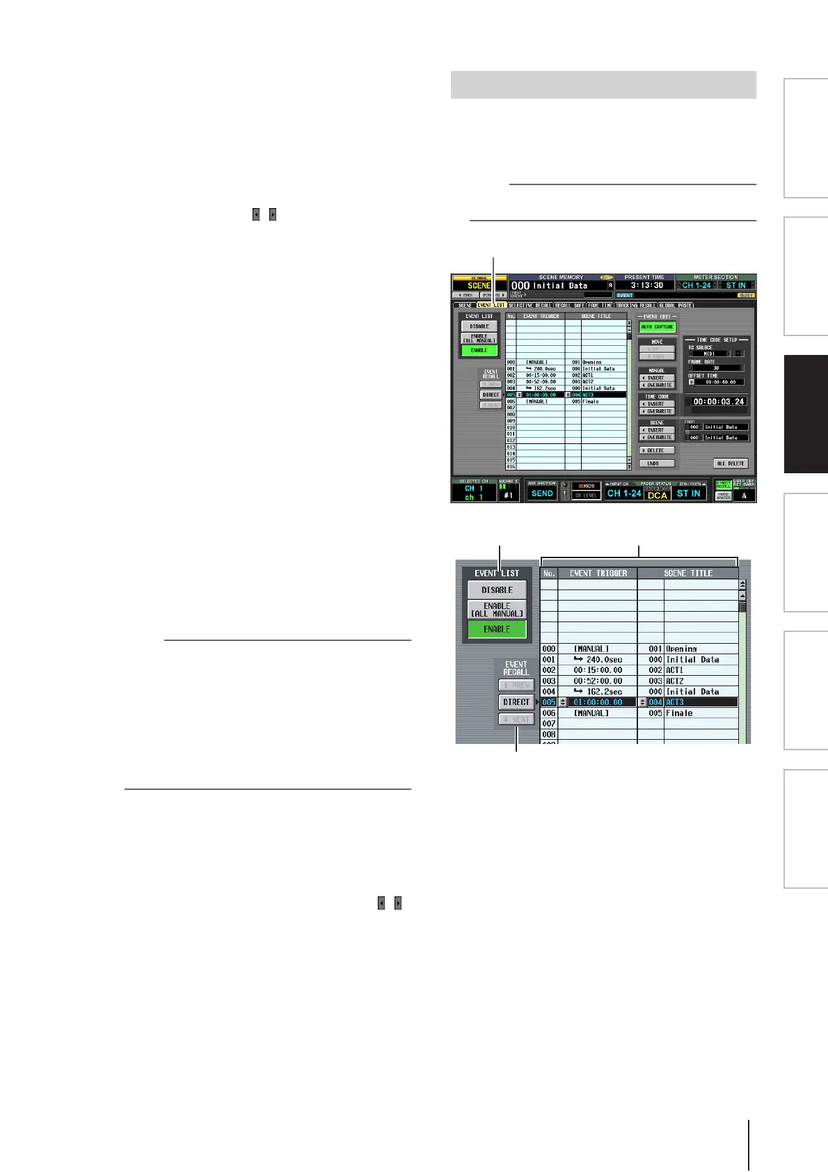 The Event List function lets you register scenes in the order