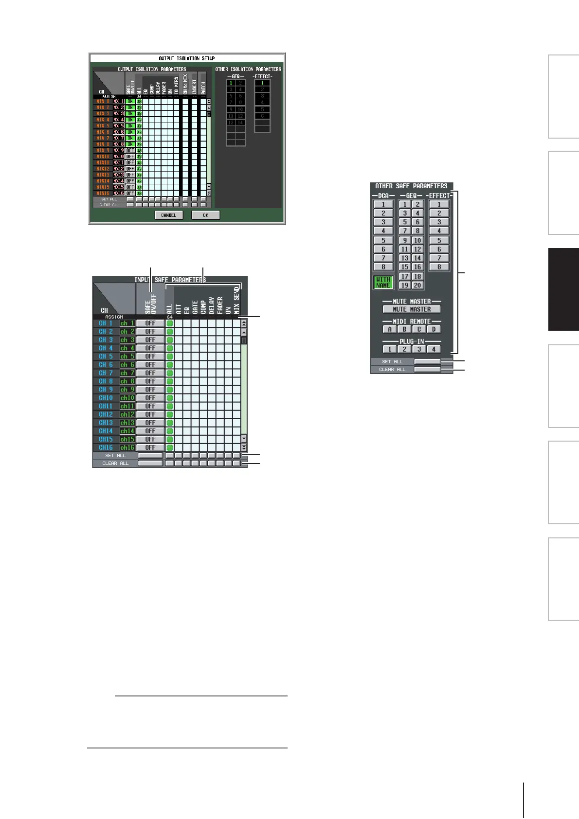 • Settings in the parameter matrix grid are ignored for chan-