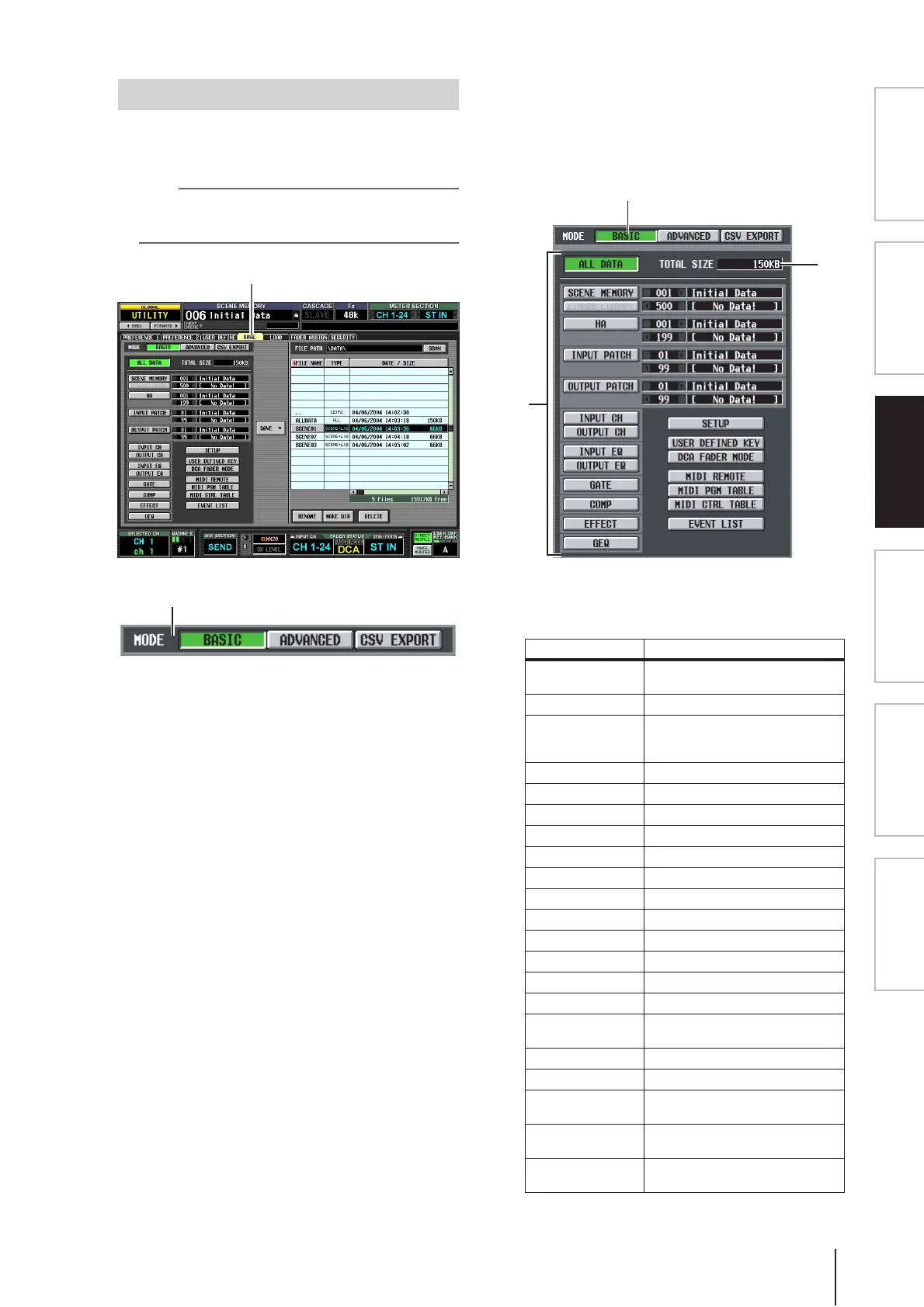 INPUT CH Contents of the input channel library