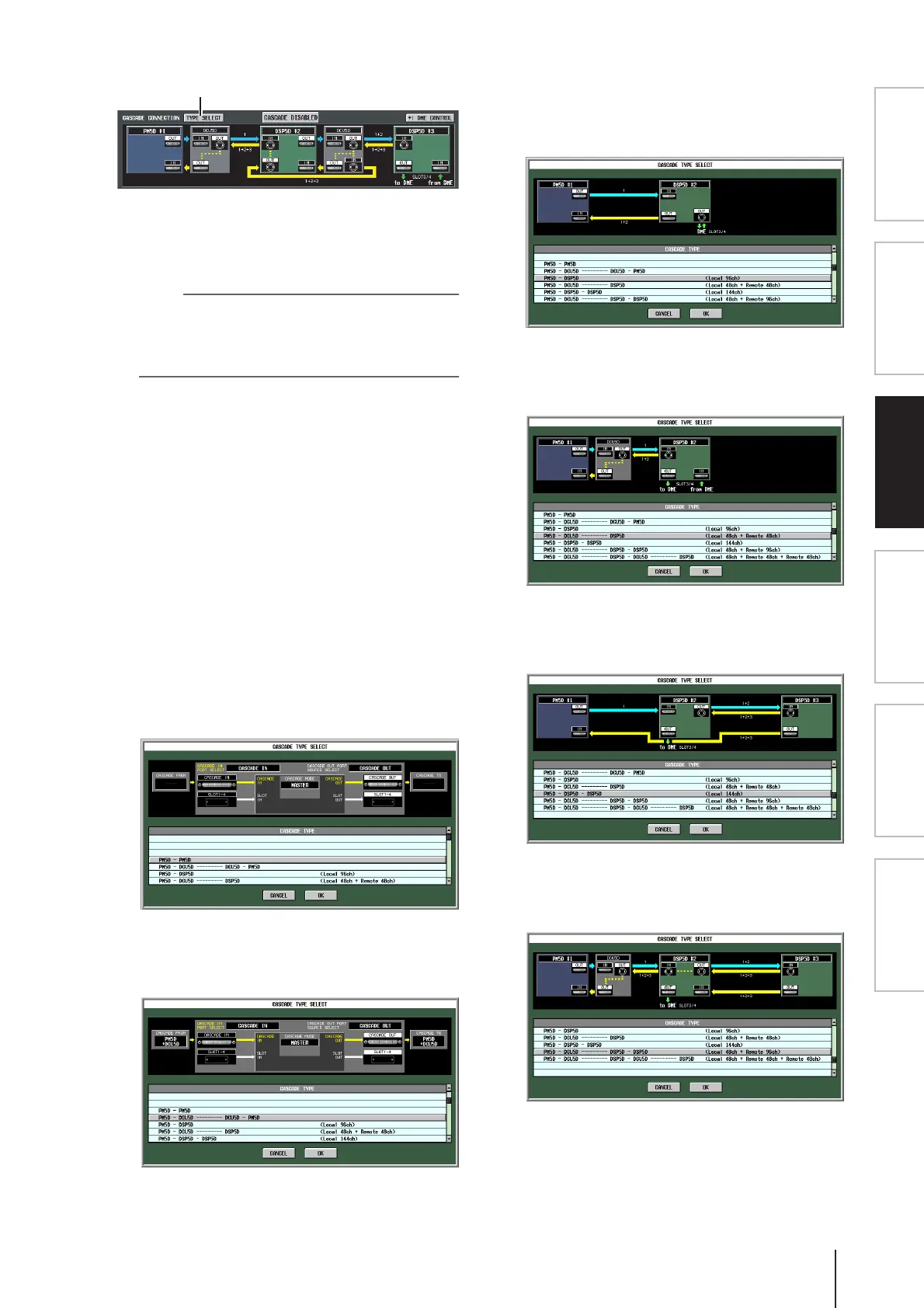 • Set the cascade connection type to match the actual con-