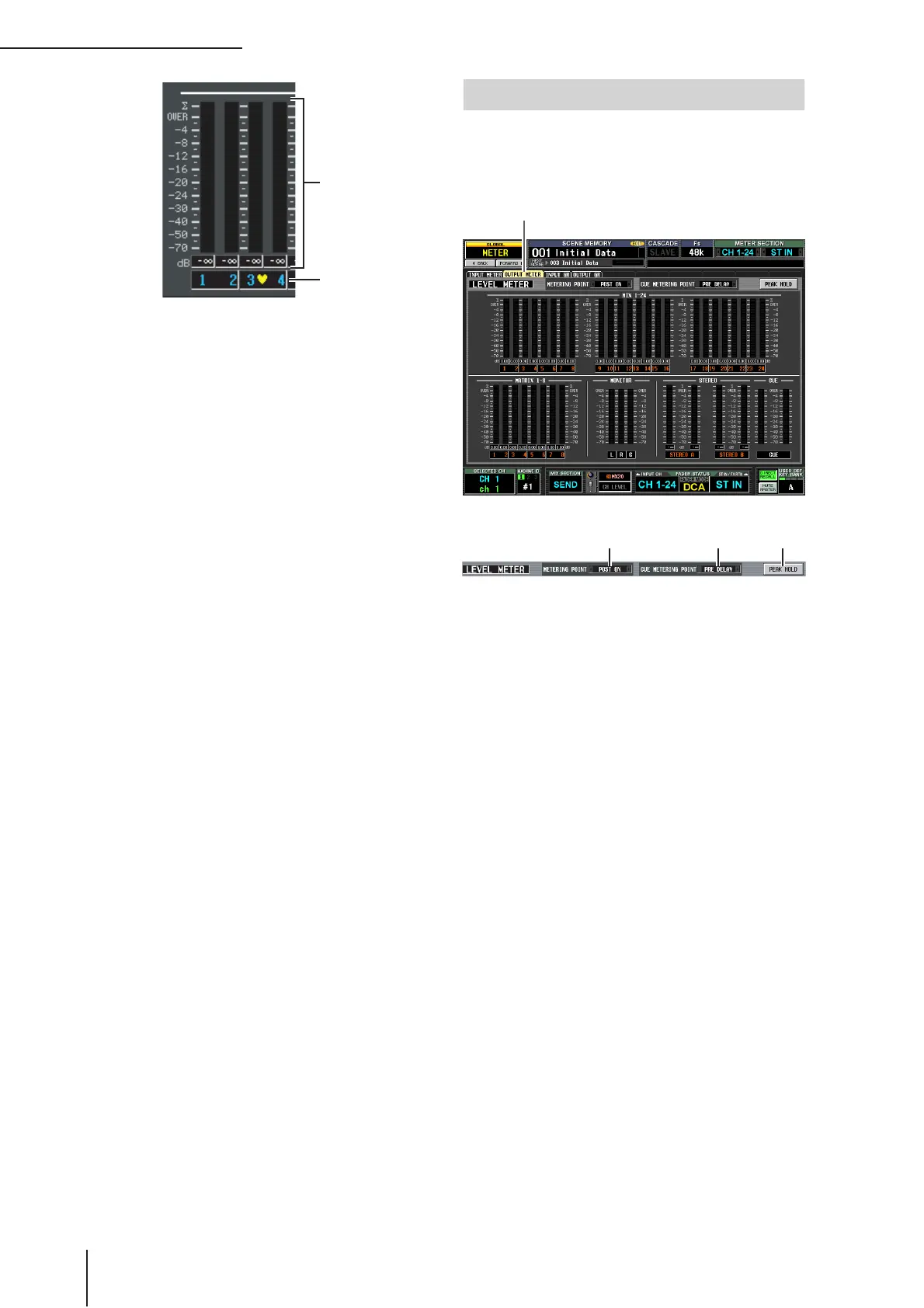This screen contains meters that show the output level of