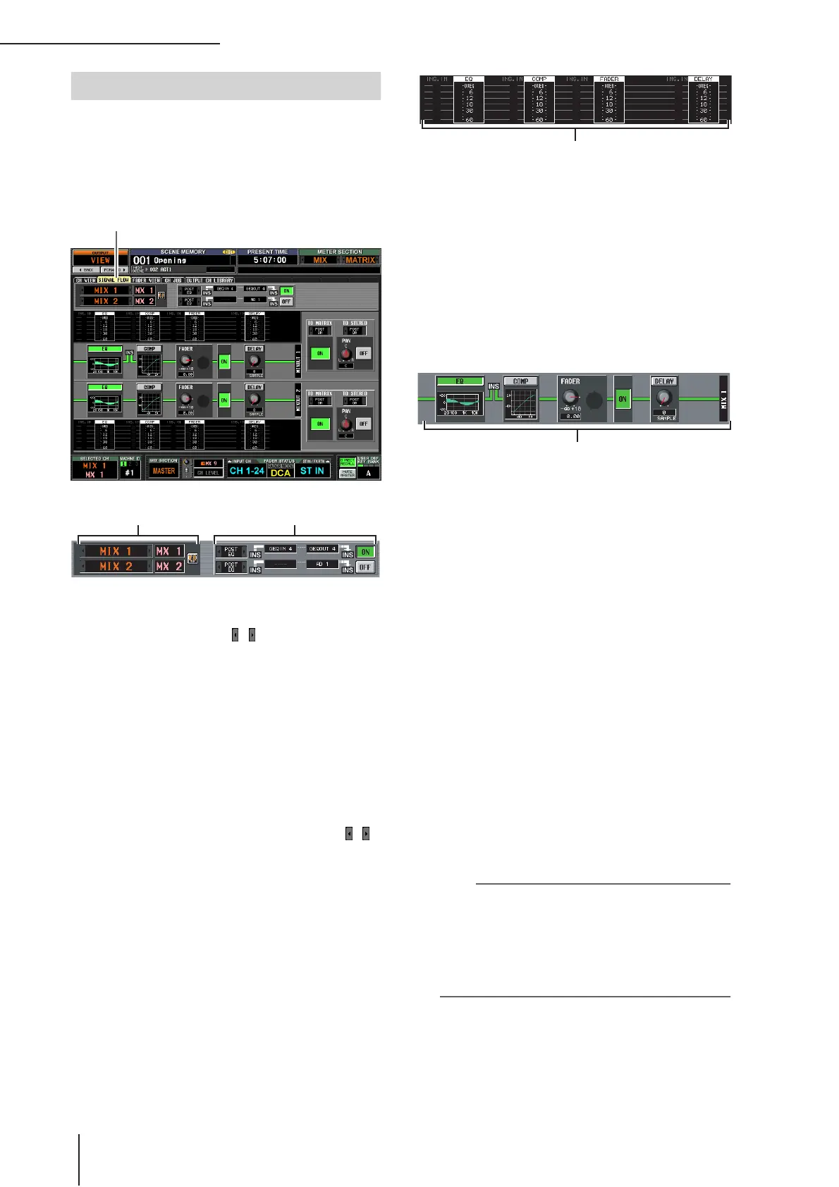 This area indicates the signal flow of the selected chan-