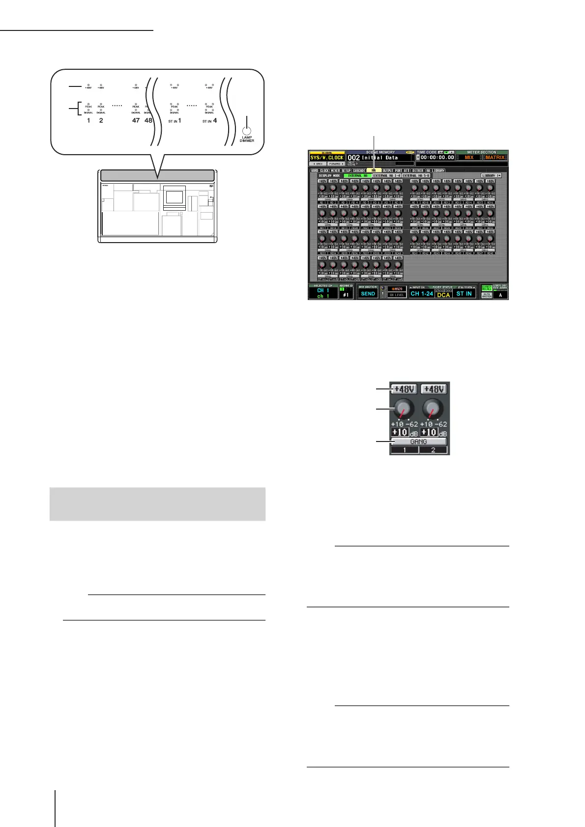 INPUT jacks 1–48 and ST IN jacks 1–4. These operations