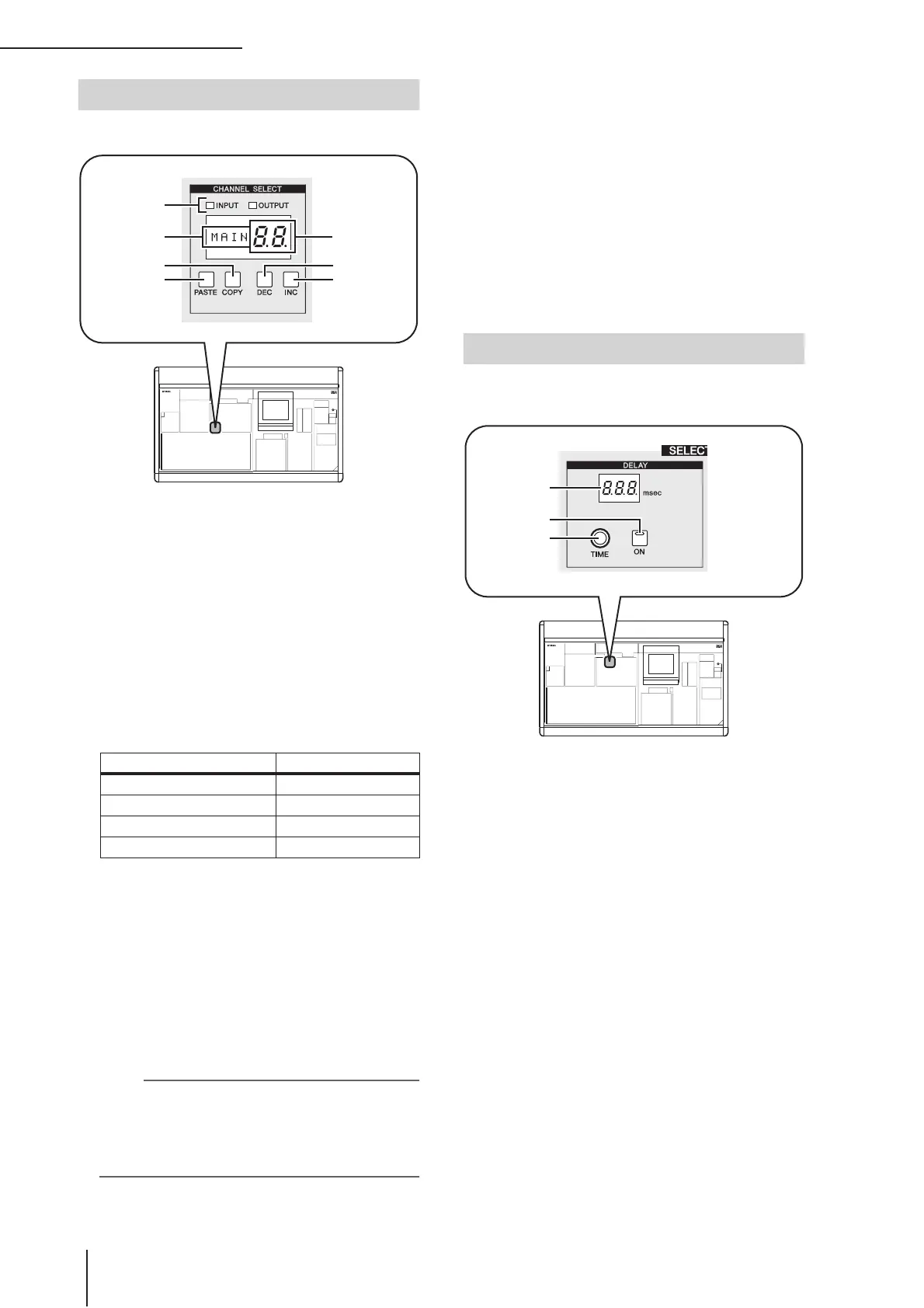 This key switches delay on/off for the selected channel.