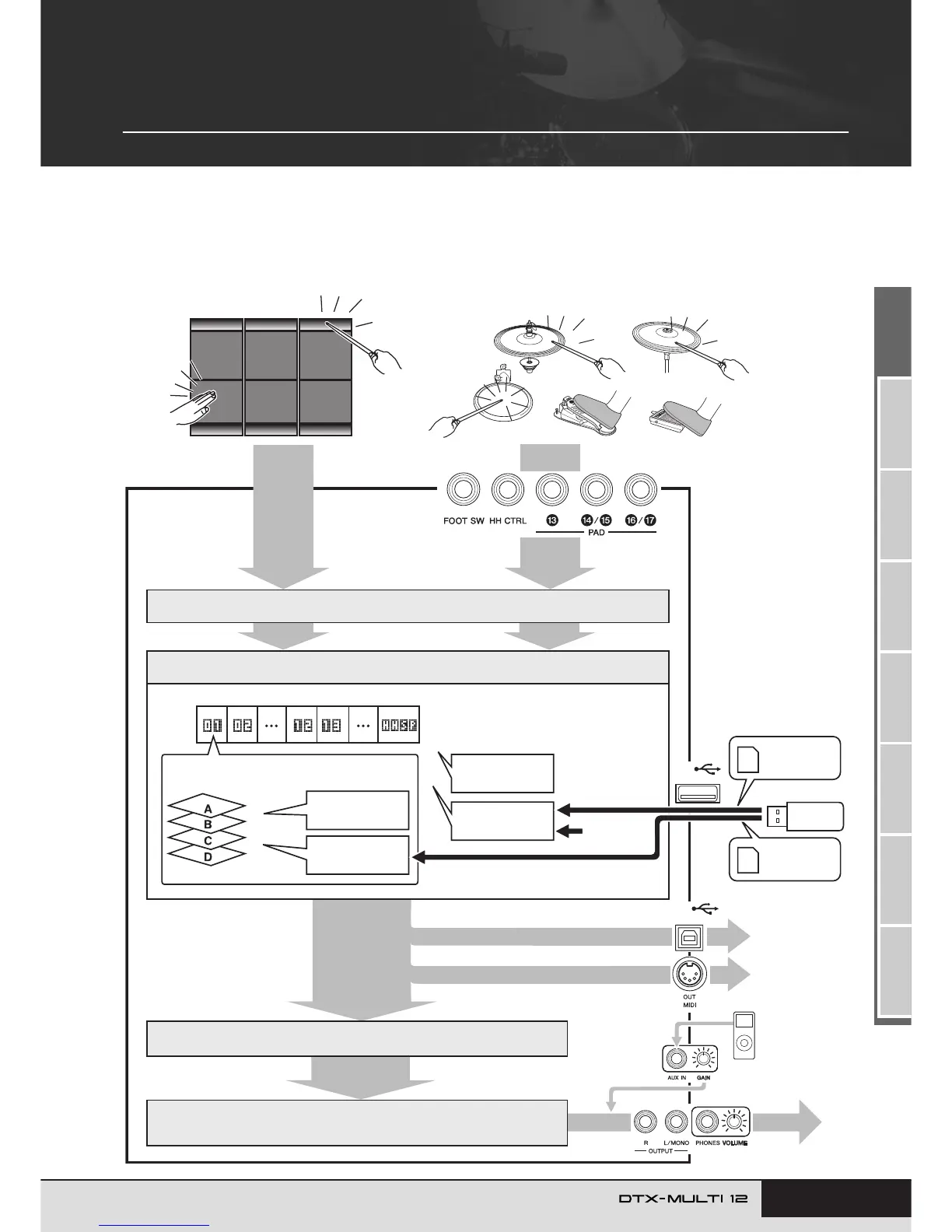 pad and the output of a sound from speakers. Understanding how signals flow and are processed internally will allow