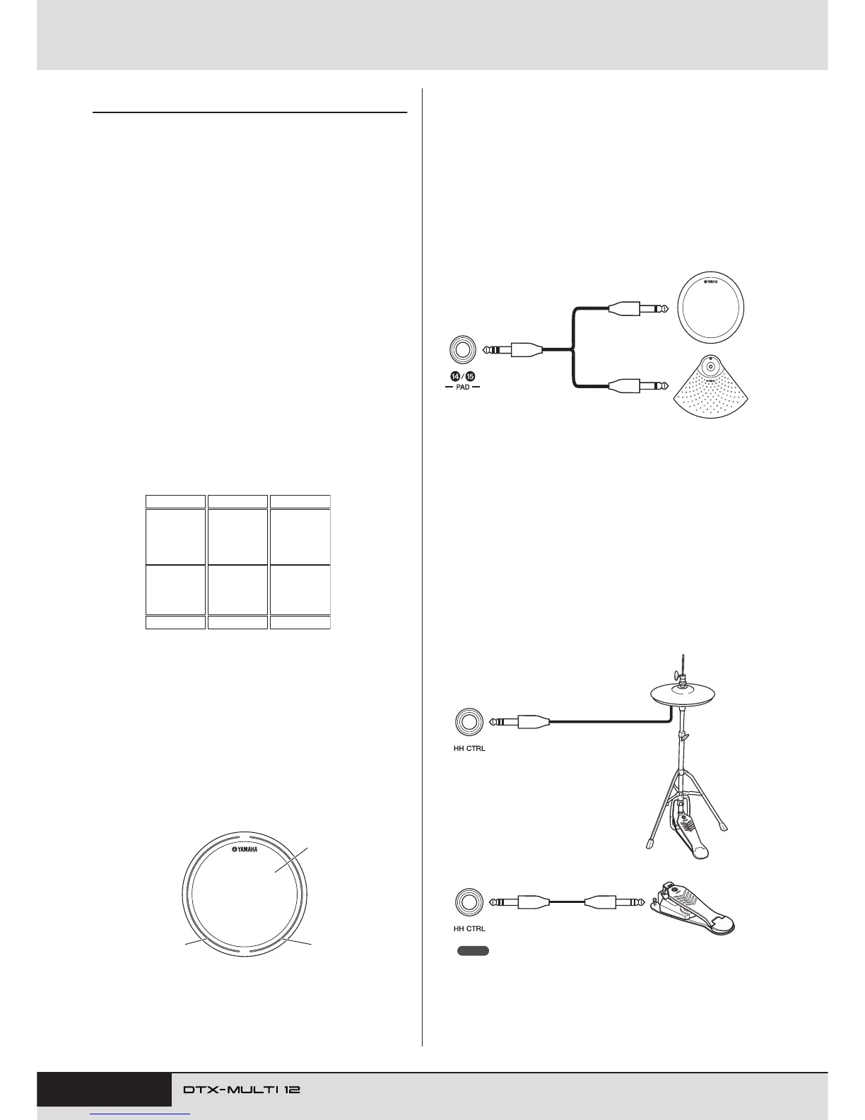 Pads 4 to 9 (main pads) and Pads 1 to 3 and 10 to 12 (rims)