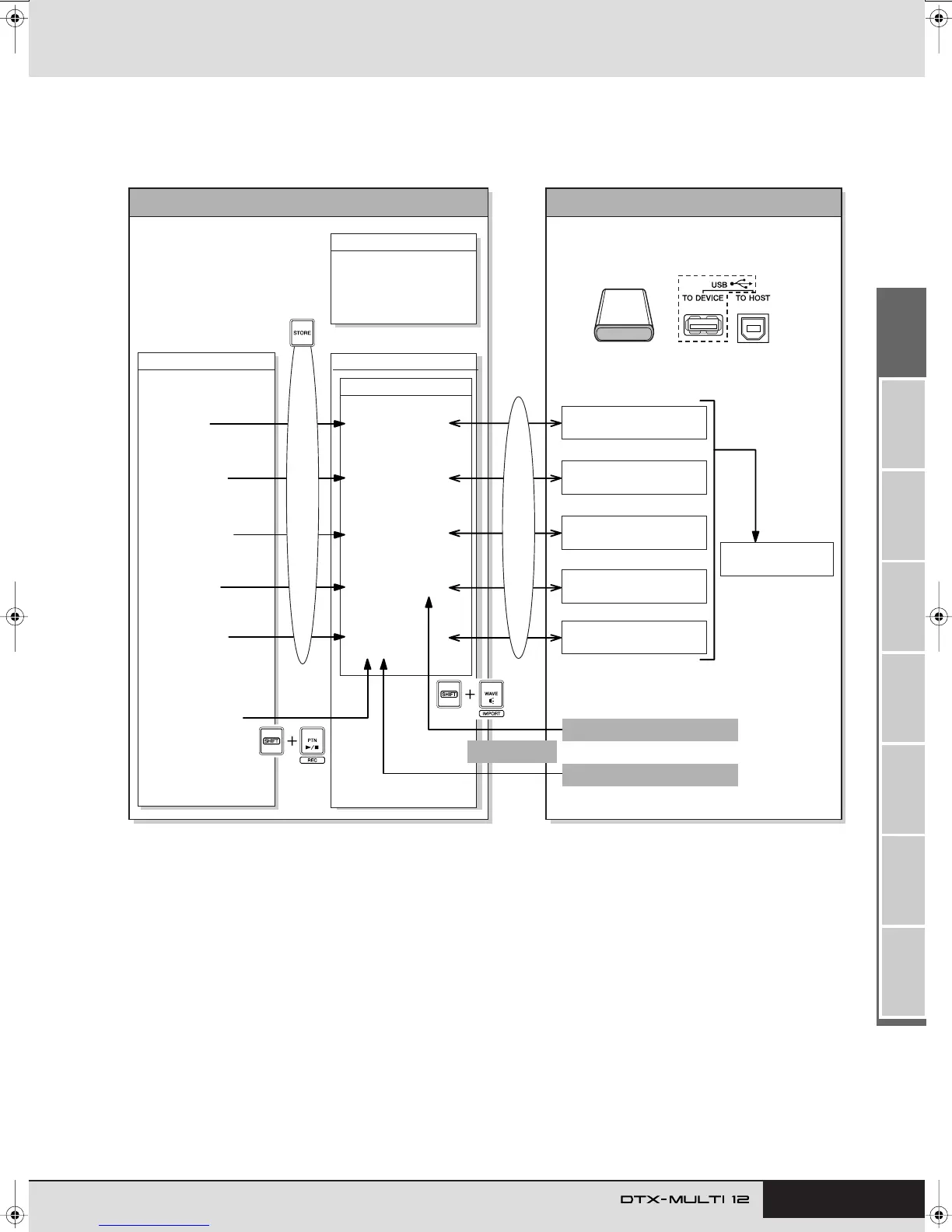 The following diagram shows the correlation between the various functions that can be used to create data on the DTX-