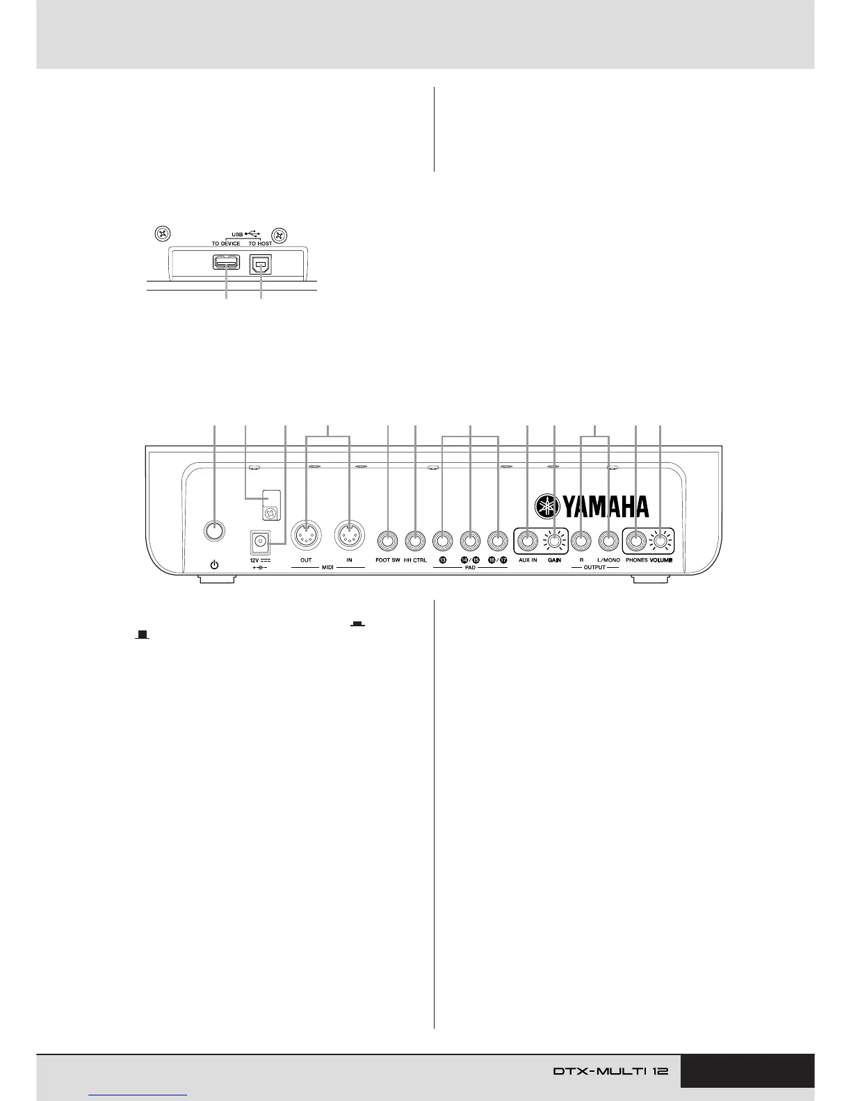 This port is used to connect the DTX-MULTI 12 to a computer via a USB cable. When
