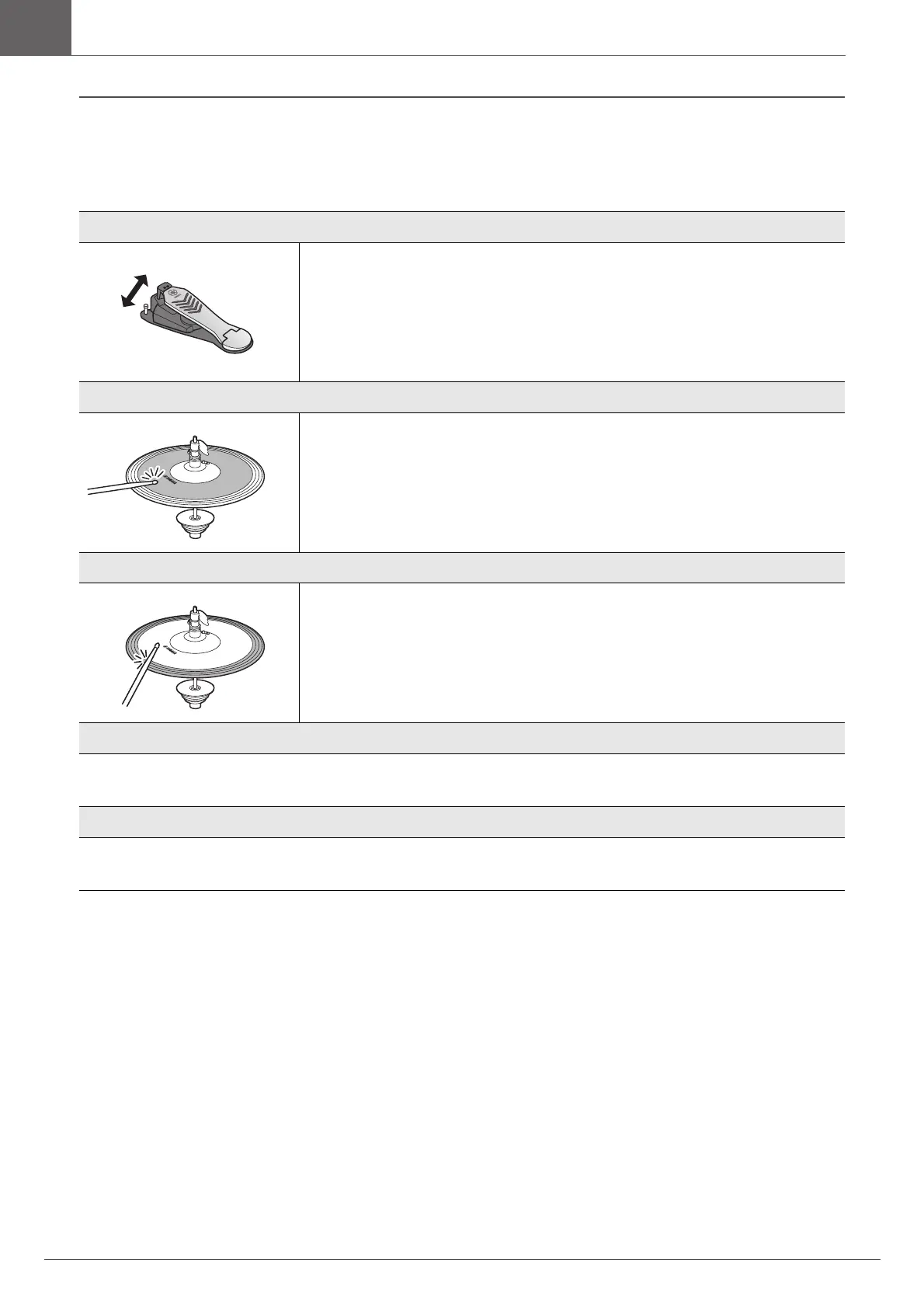 • You can produce an open hi-hat sound by striking the hi-hat pad with the hi-hat con-