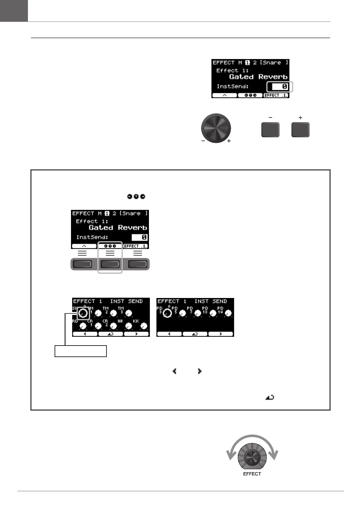 Turn the [EFFECT] knob and try striking the