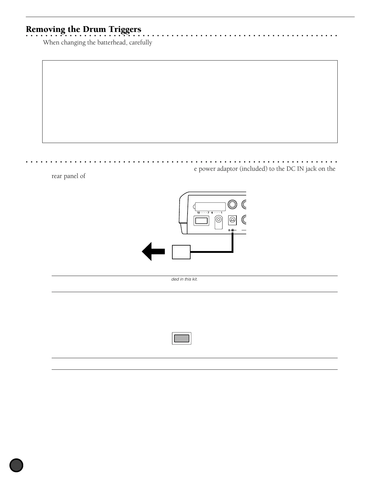 DTX, and might pose a serious shock hazard. Also, unplug the power adaptor from the electric outlet when the DTX is not in use for long periods of