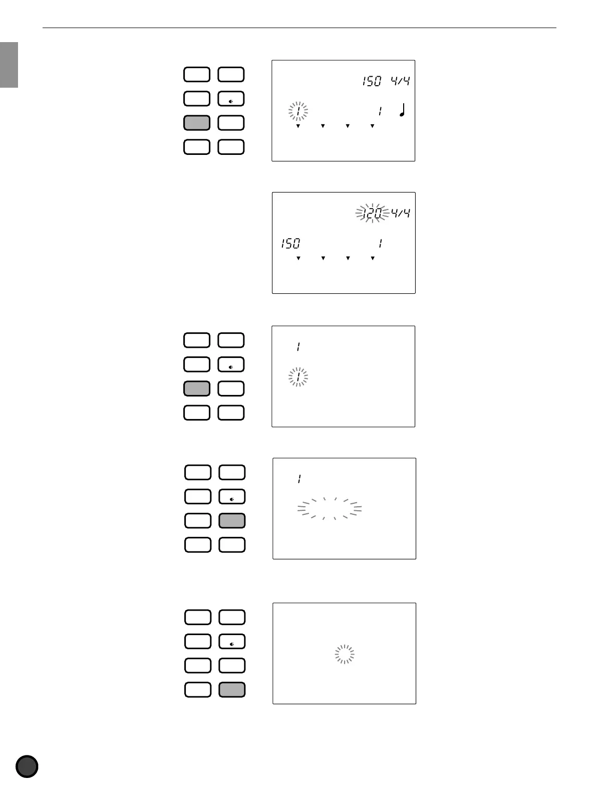 ■ Song Record mode: Enter this mode by taking several steps in Song Play mode. Refer to P.99 for details.