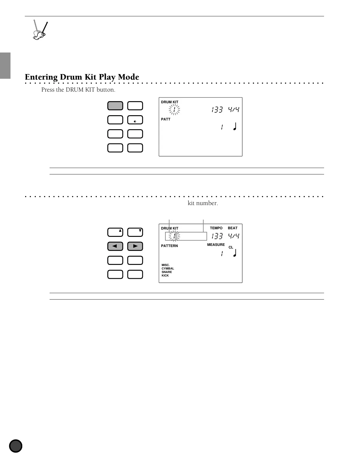 The drum kit number is automatically selected and blinks when you enter Drum Kit Play mode.
