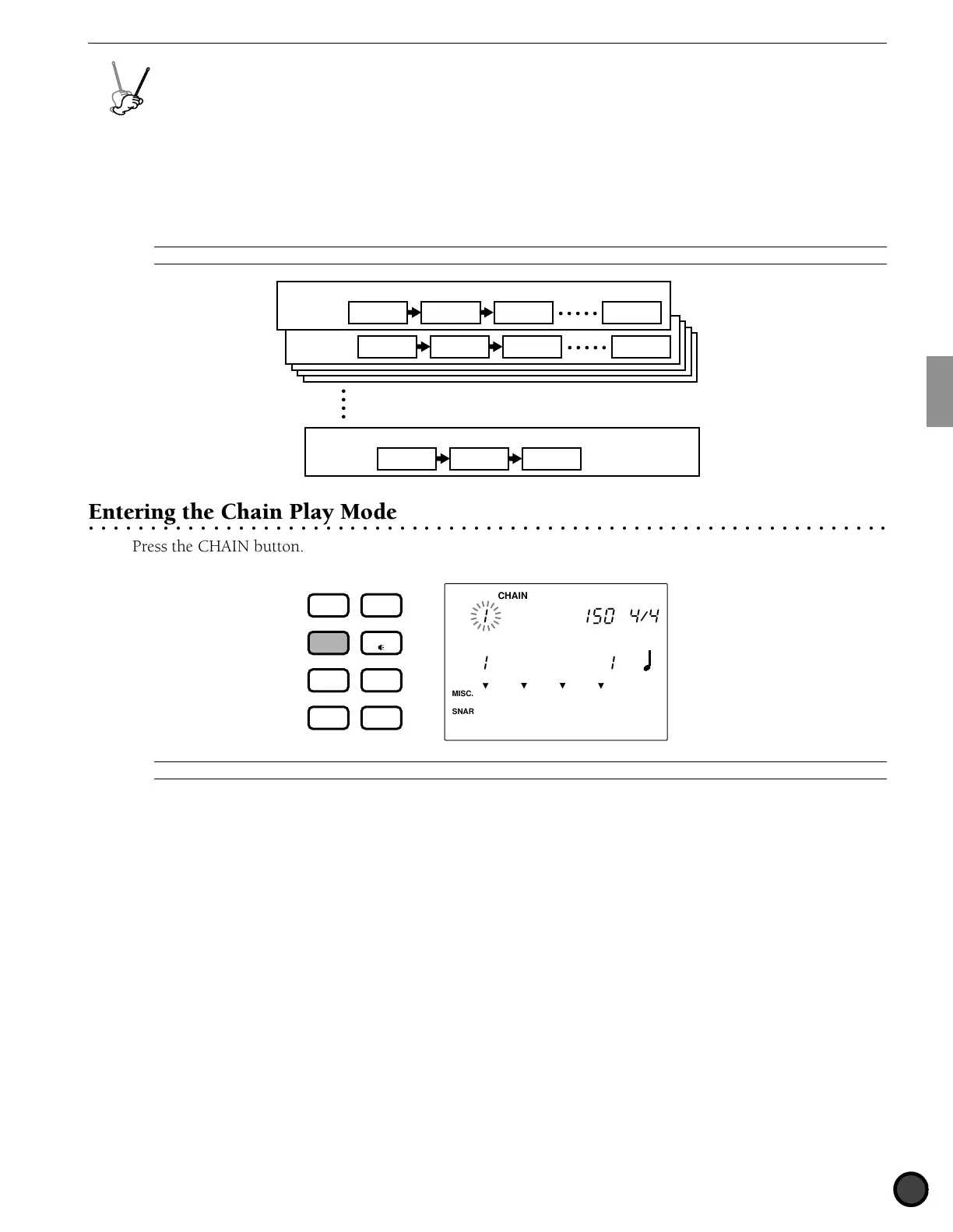 Chains are used to organize the drum kits (or patterns) in a user-programmed order, making it quick and