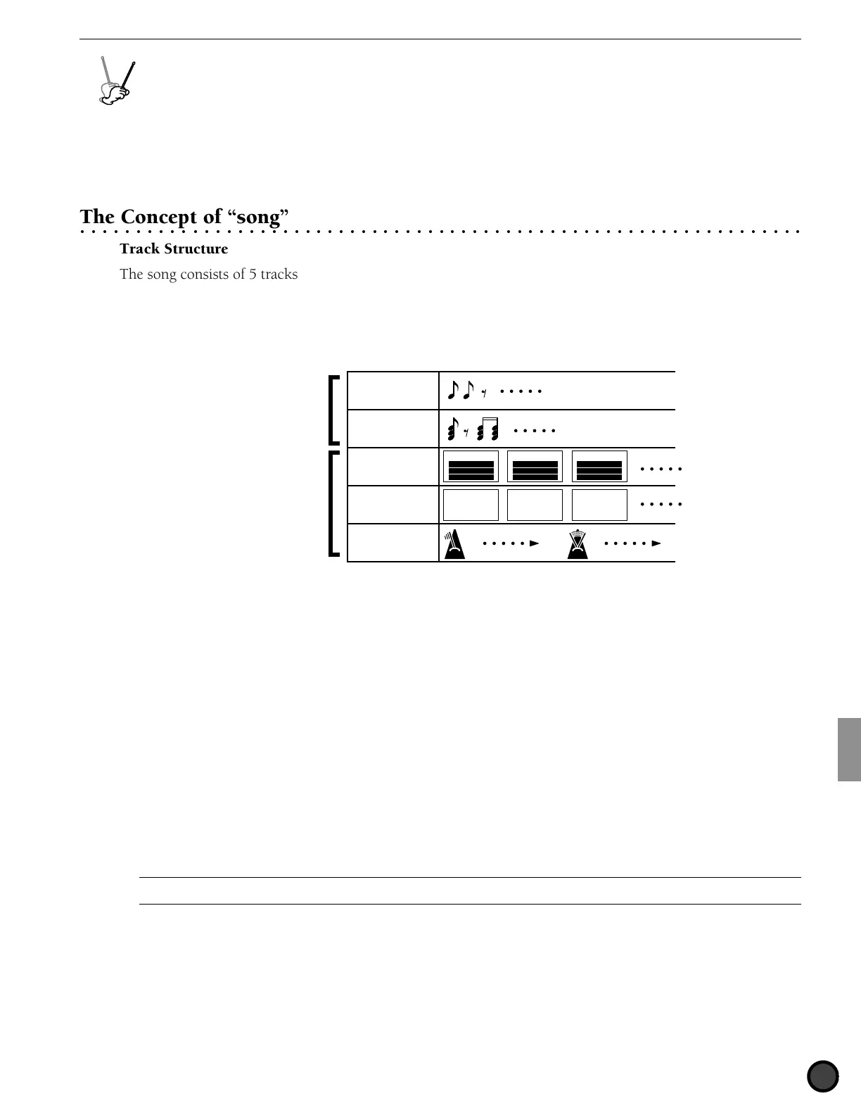 The song consists of 5 tracks: 2 sequence tracks (TR1 and TR2) and 3 backing tracks (pattern, chord, and
