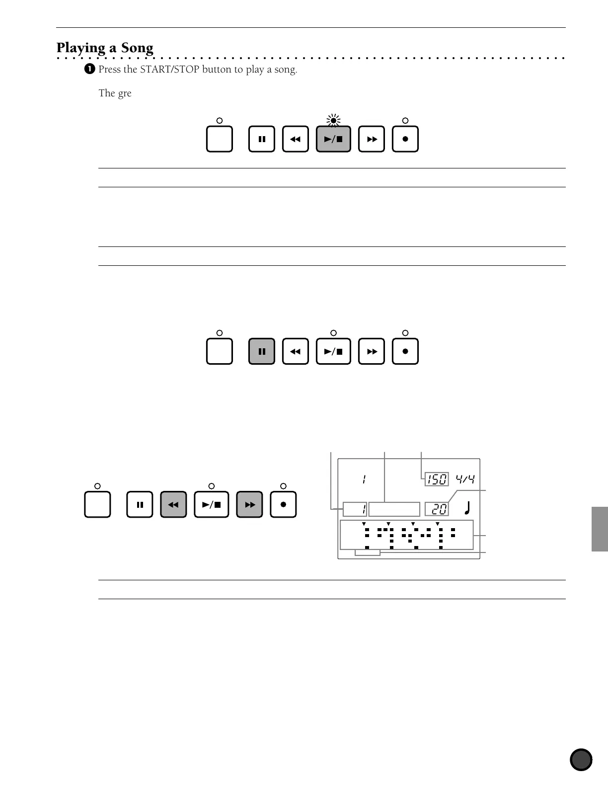 Press the PAUSE button to pause the song. The LED above the START/STOP button will turn off. The song