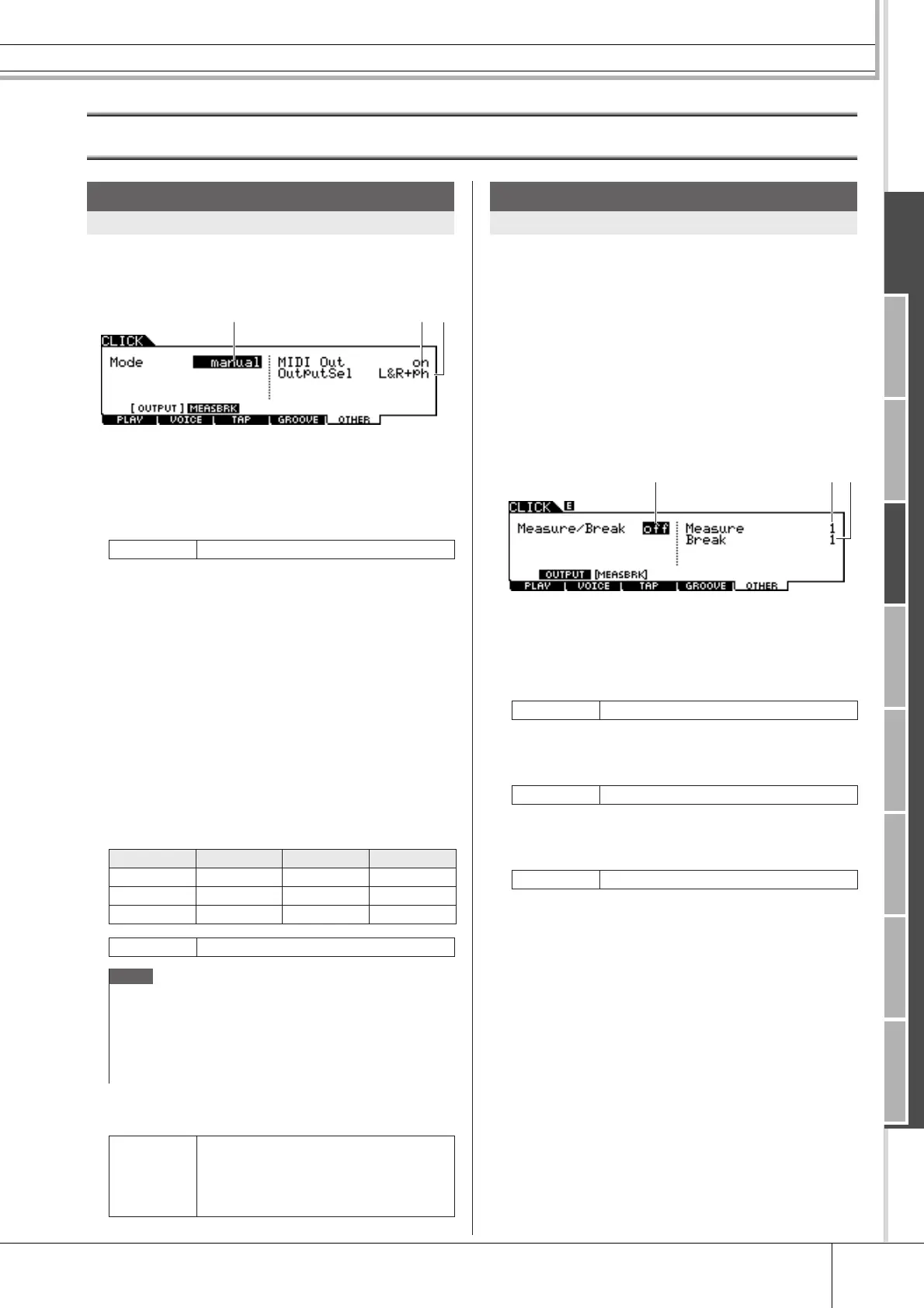 mitted via MIDI OUT only when the Click sound is produced. The