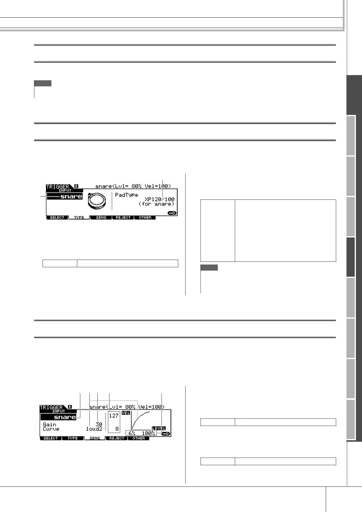snare pad, set the pad type to “for snare.” As the sensitivity of the