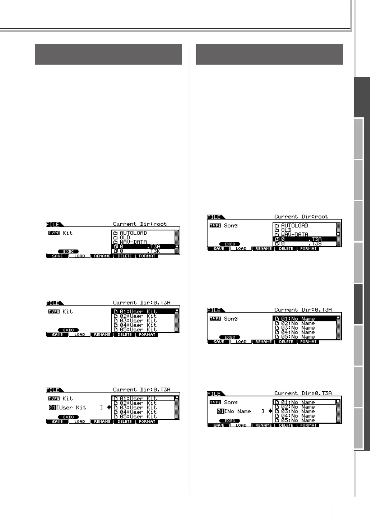 extension: .T3A or .T3S) to the desired User Song number.