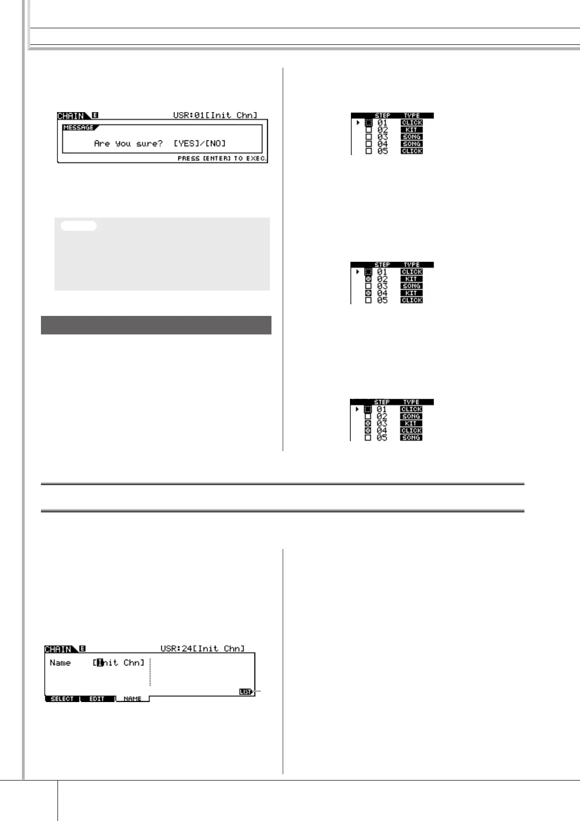 • The edited Chain will be lost when selecting a different Chain or