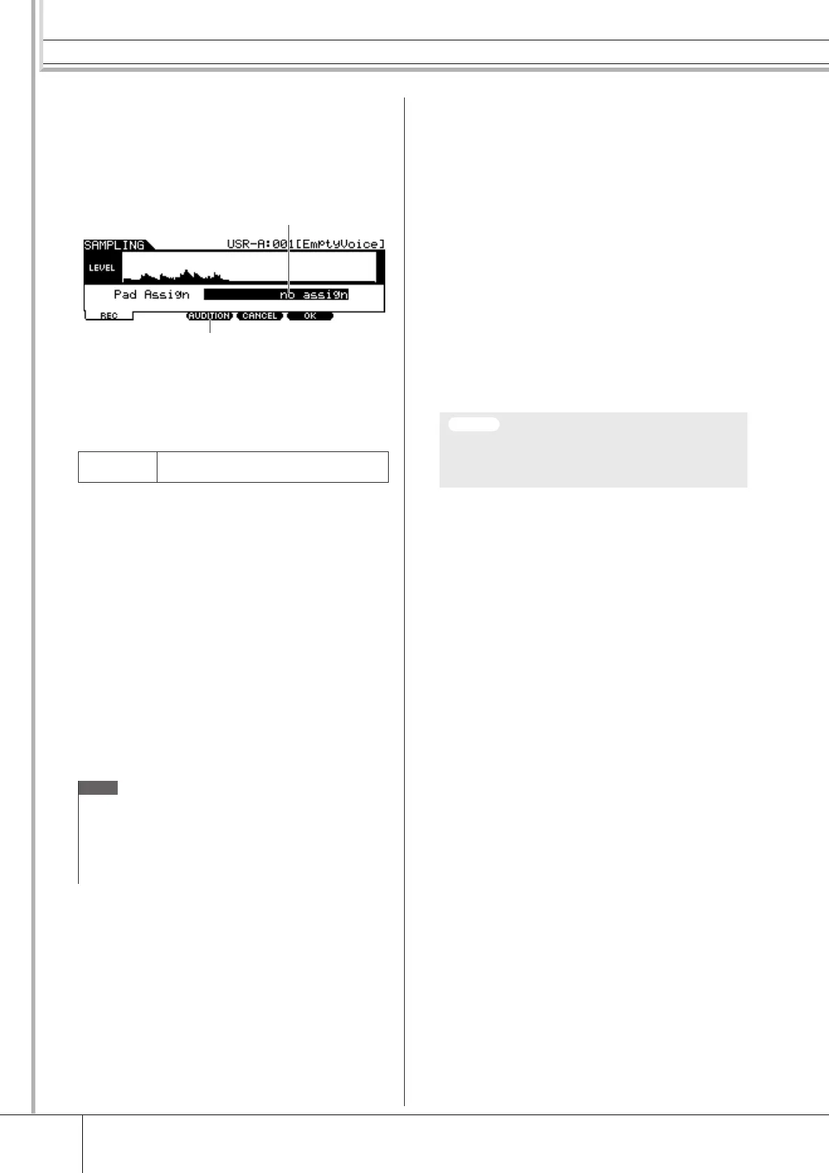 AUDITION button and assign the recorded audio signal (or