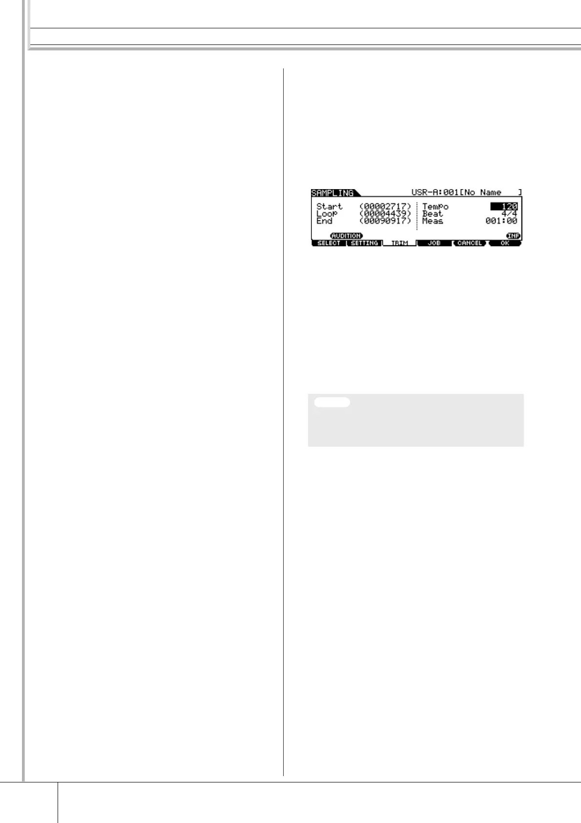 ting the parameters, press the [SF1] AUDITION button to