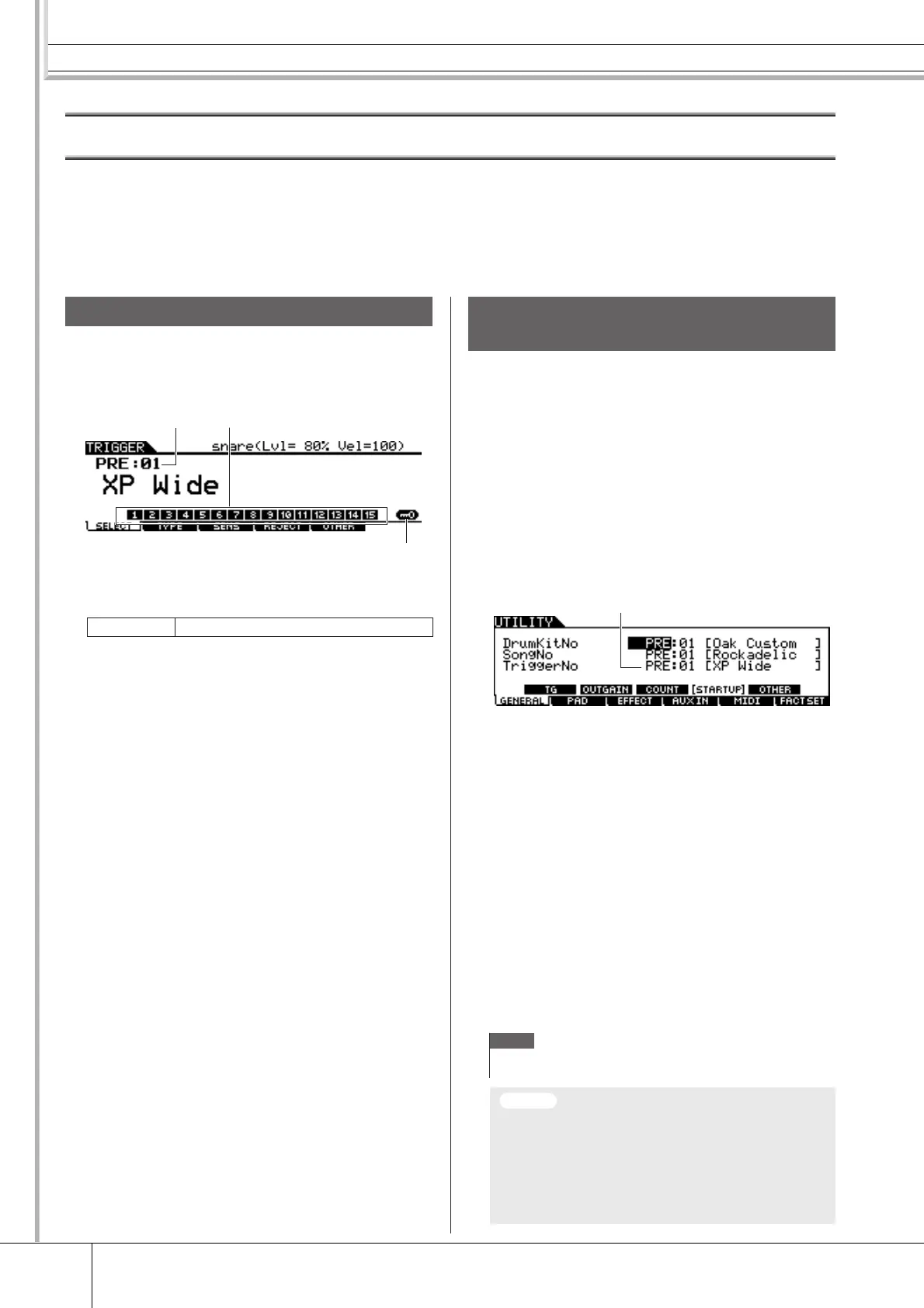 Select an appropriate Trigger Setup for your Drum Kit from the pre-programmed Trigger Setups in the DTX900. Use the