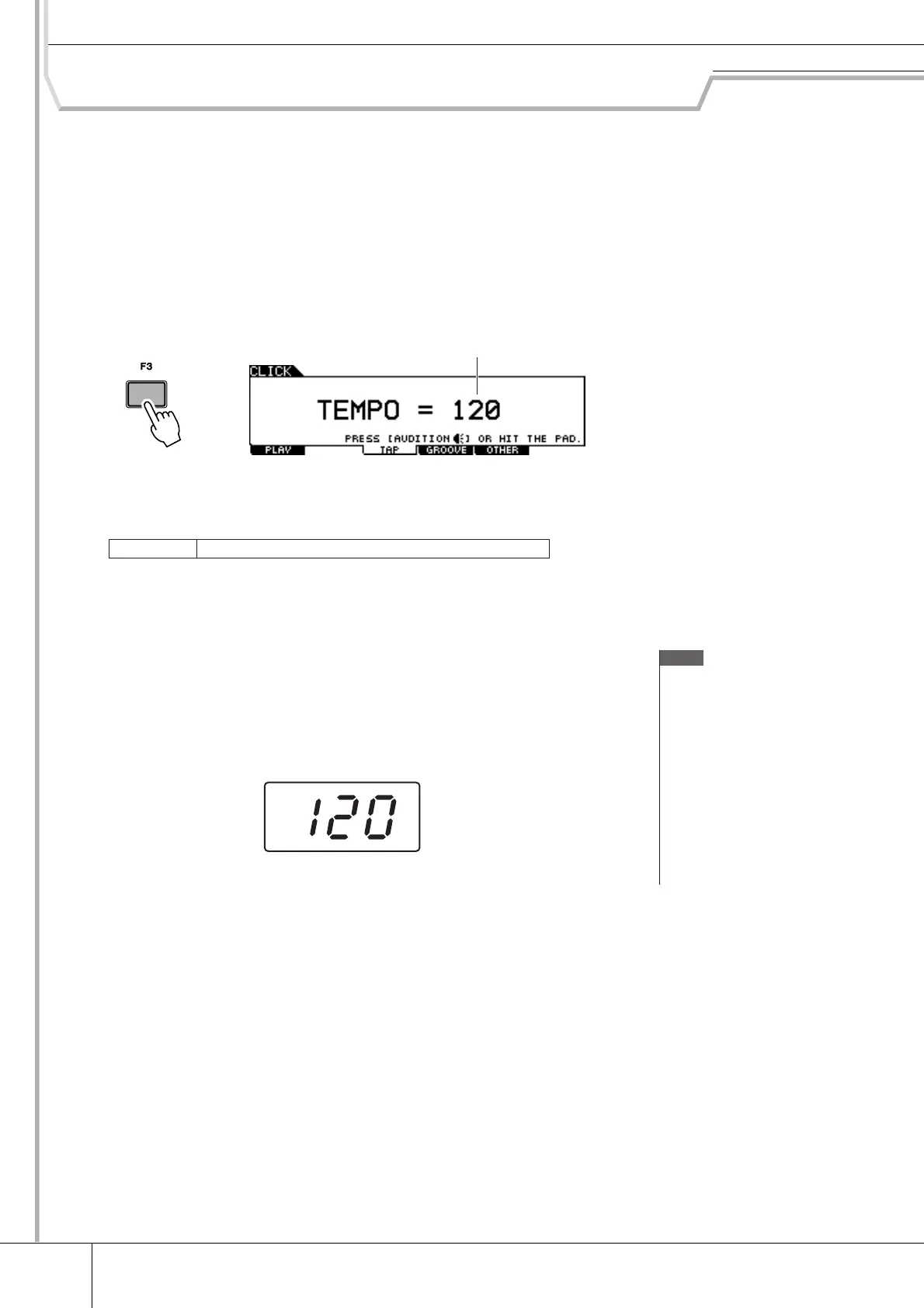 the pad, and is shown in the LED display and indicated as a TEMPO value in the