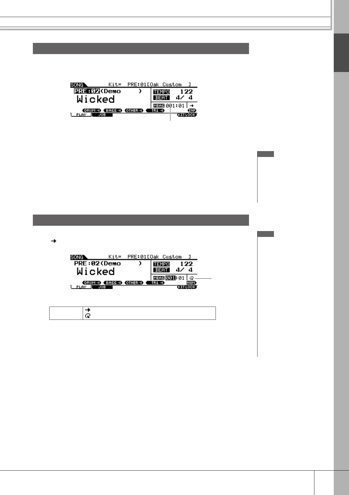 When “ ” is selected, the Song plays from beginning to end and stops automatically.
