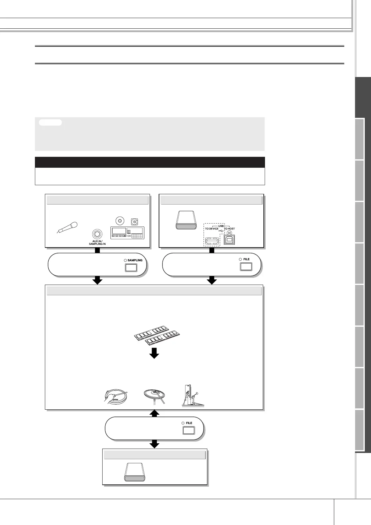 • The User Voices created in the Sampling mode reside temporarily in the optionally installed DIMMs (pages 76 and