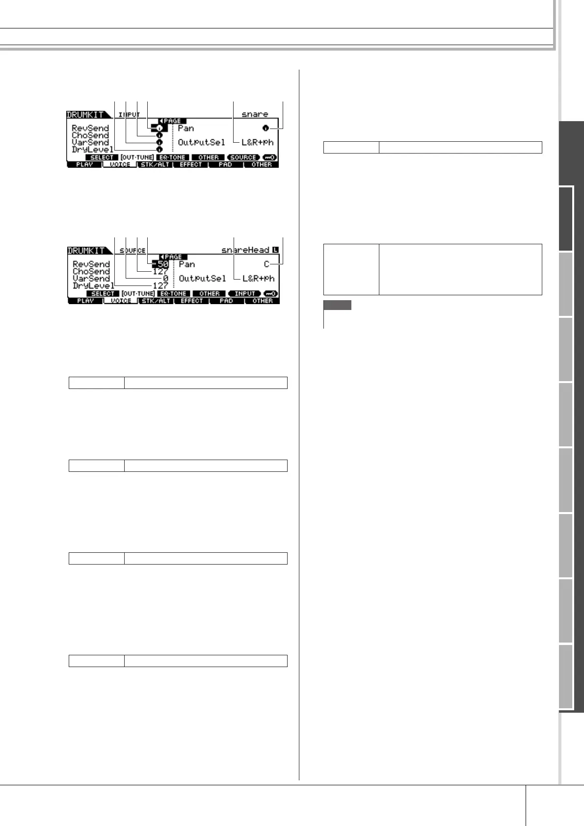 (dry) level of the Reverb/Chorus effects’ signal for each