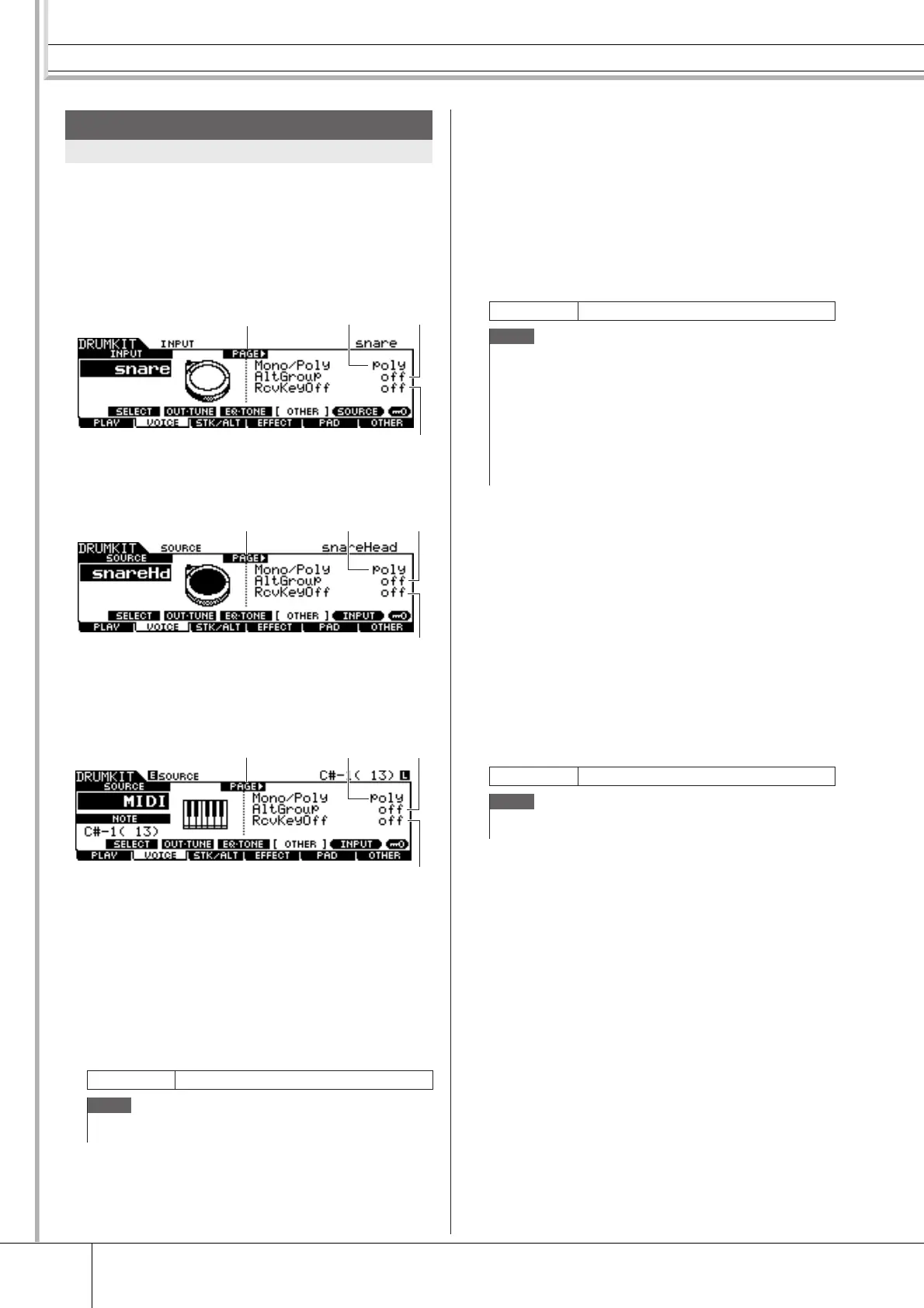 • Concerning the Drum Voices assigned to the same number (1 – 124) of