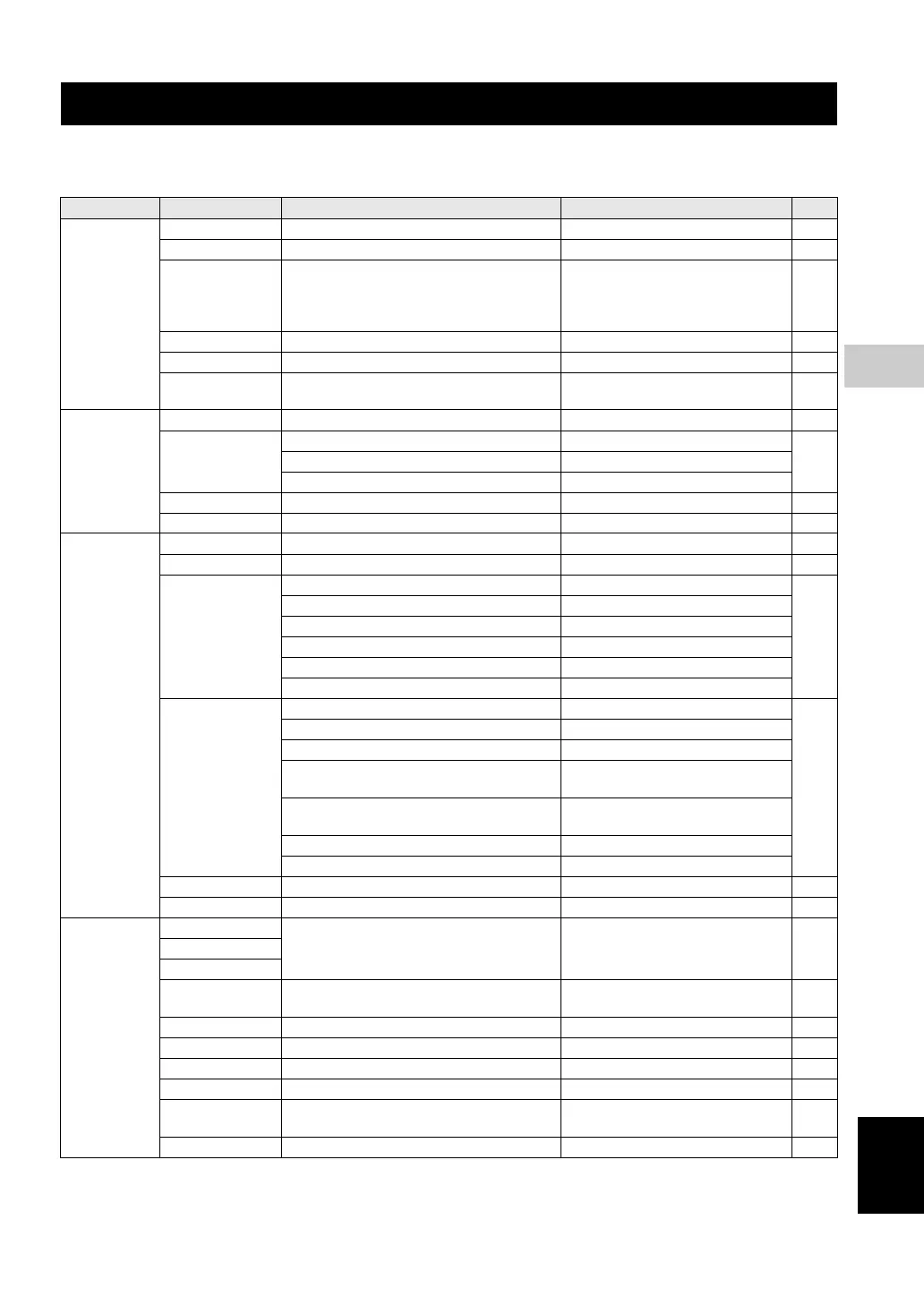 Setup page Menu item Setting Item/Submenu Setting item/Parameter Page