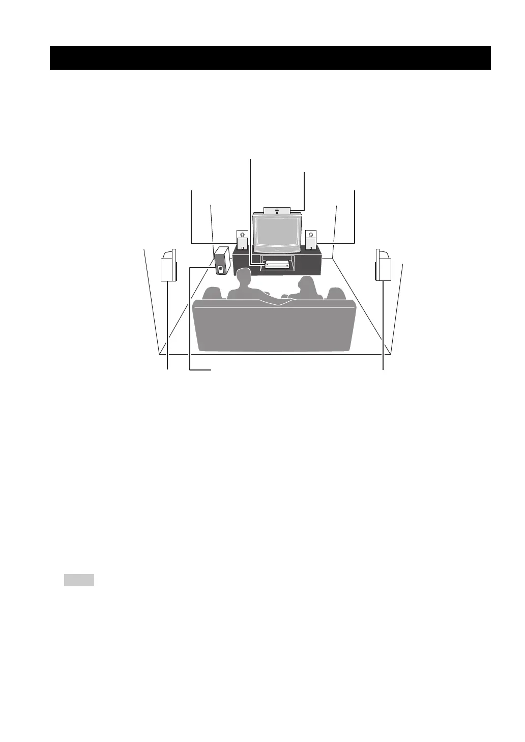 following shows the recommended layout of the speakers. For the best possible surround sound, all of the speakers