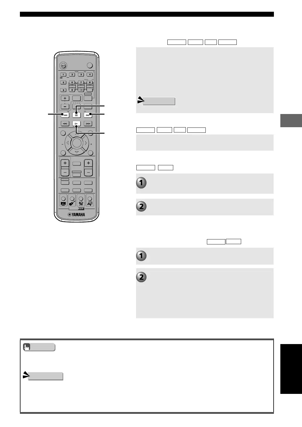 • Si vous utilisez avance/retour rapides lors de la lecture d’un disque portant une gravure Dolby Digital ou DTS, les enceintes