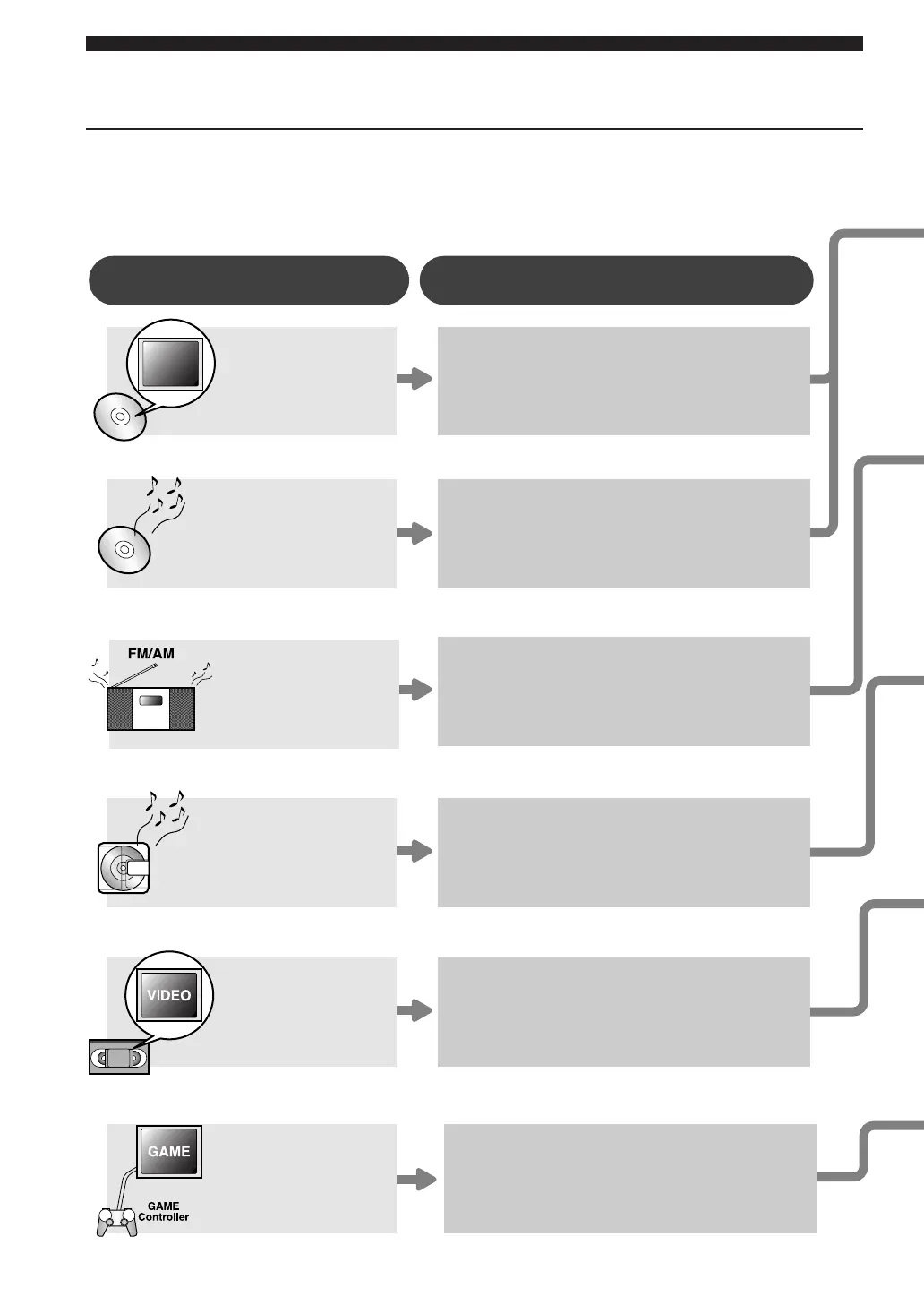 video discs, music CDs and MP3 discs. You can connect a VCR or video