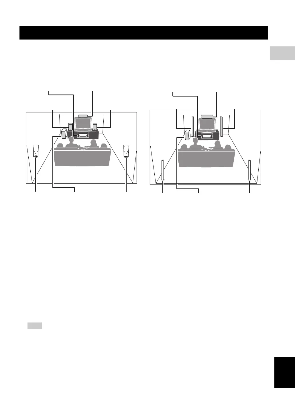 Place the surround left/right speakers behind the listening position. (For NX-S301, we recommend placing them at a height of 1.8 m