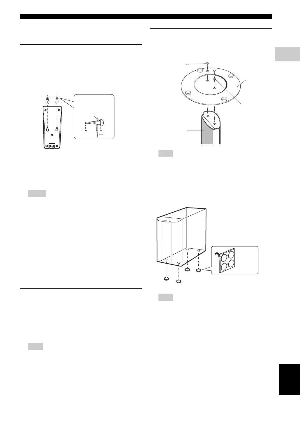 must be firm. Do not attach a speaker to a wall that