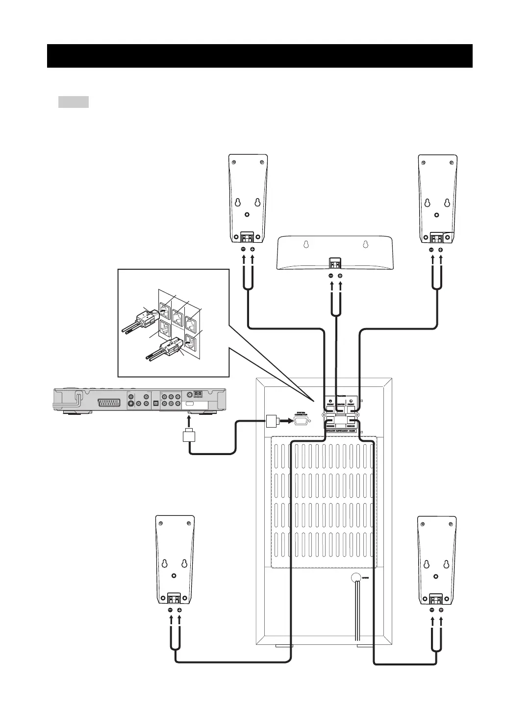 Please refer to the pages below for detailed information on how connect each speaker.