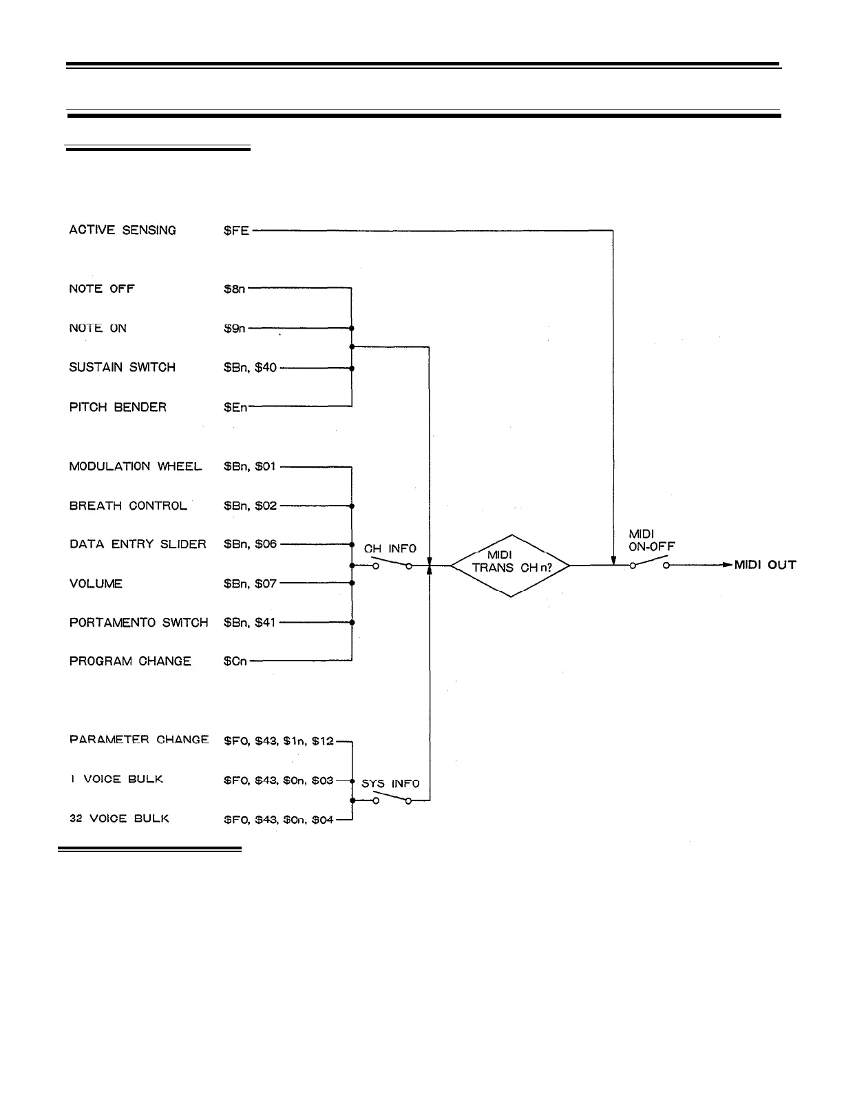 transmission channel is determined by the setting of the MIDI TRNS CH function.