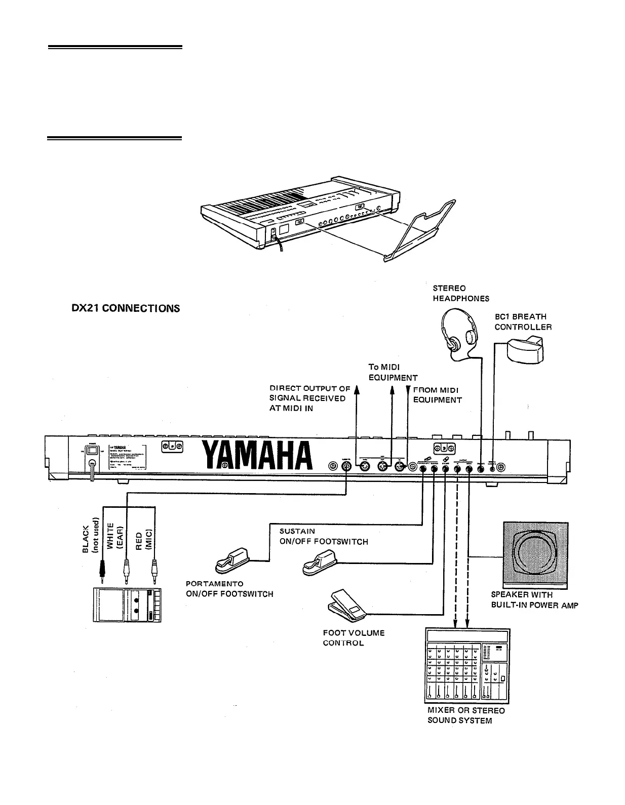 sure to turn the DX21 and any effects units used on BEFORE turning the main