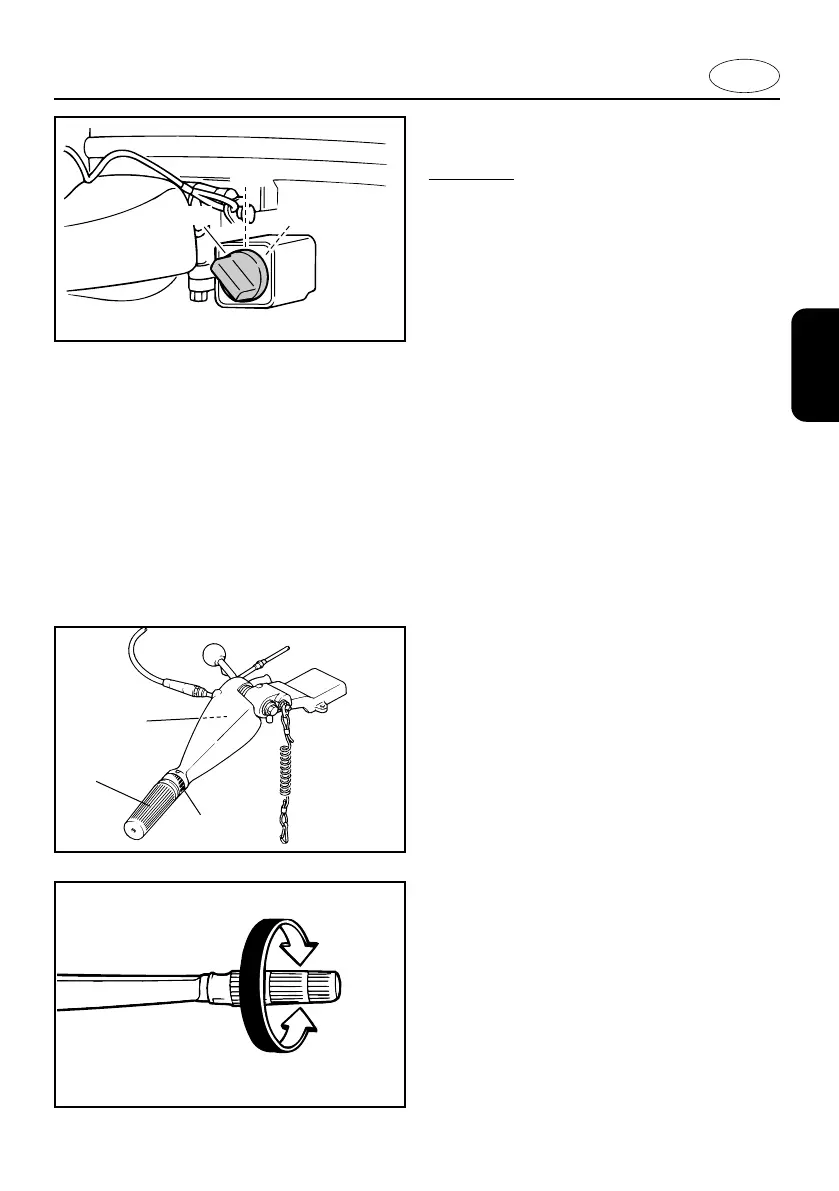 Moving the tiller handle sideways to adjust