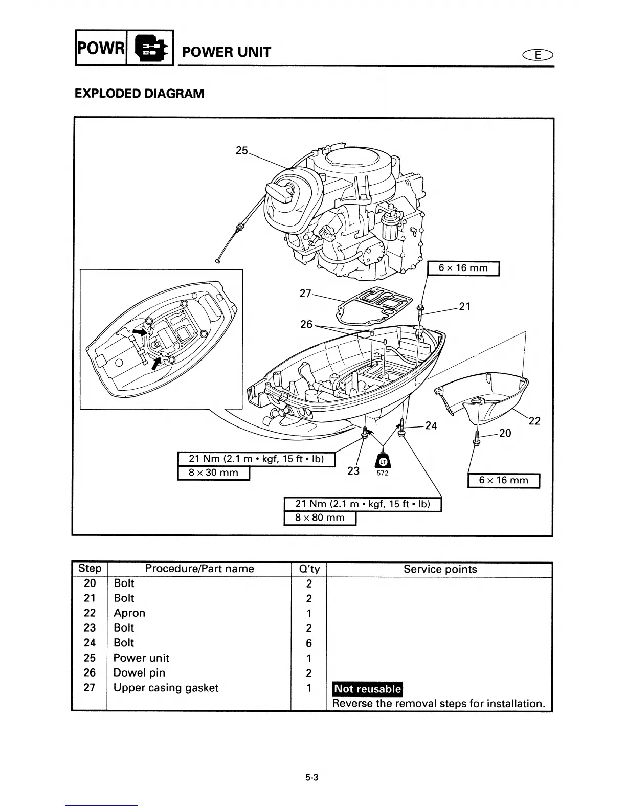 Yamaha E40X - Power Unit Exploded Diagram;Removal and Installation Chart (End)